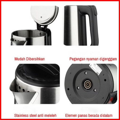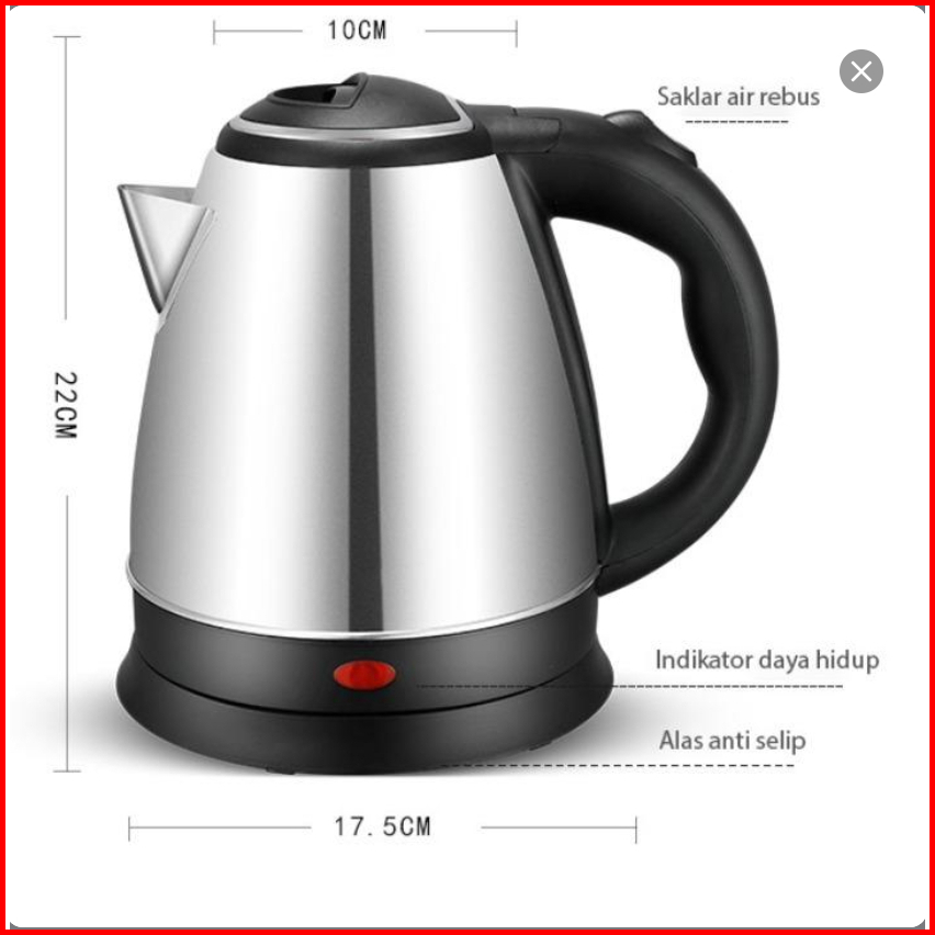 Lunalife Teko Listrik 2 Liter Sni 500 W Stainless Steel Pemanas Air Electric Kettle Ketel