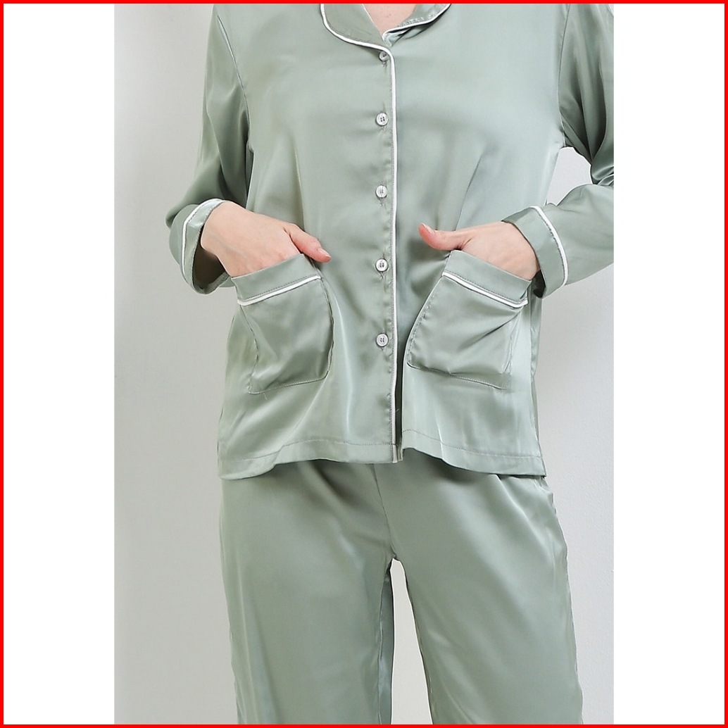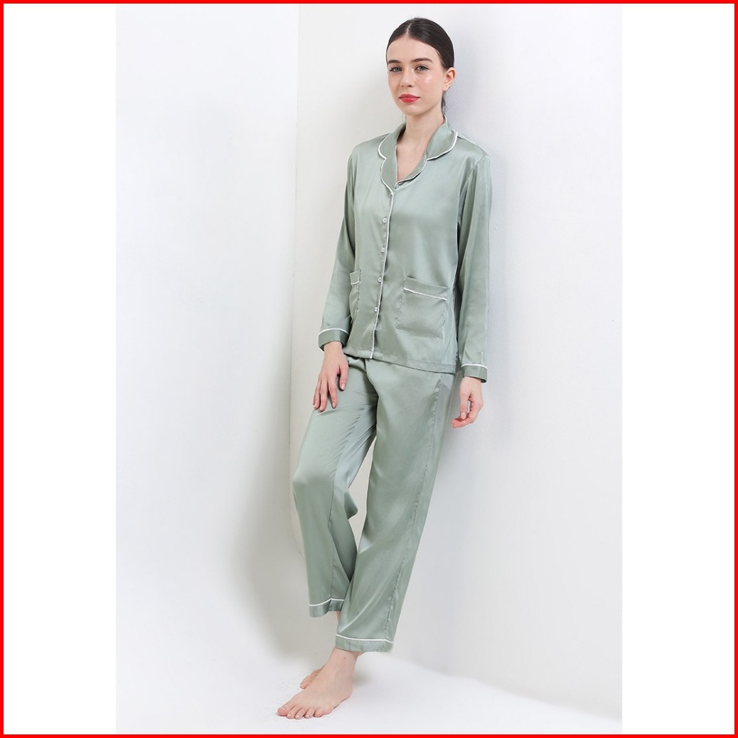 Set Pyjama Ladies Sleepwear 296 Satin Sage Lengan Panjang Celana Panjang 5203 33025 Pajamas Baju Tidur Wanita Kancing An