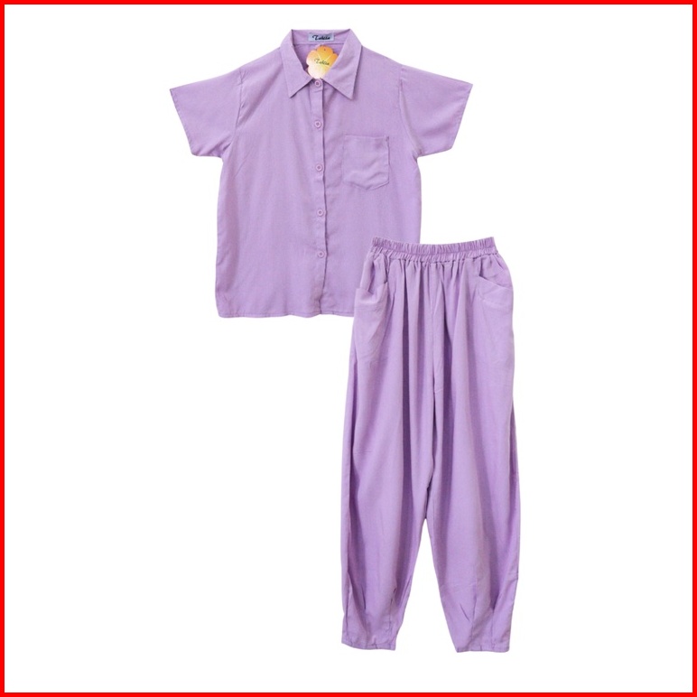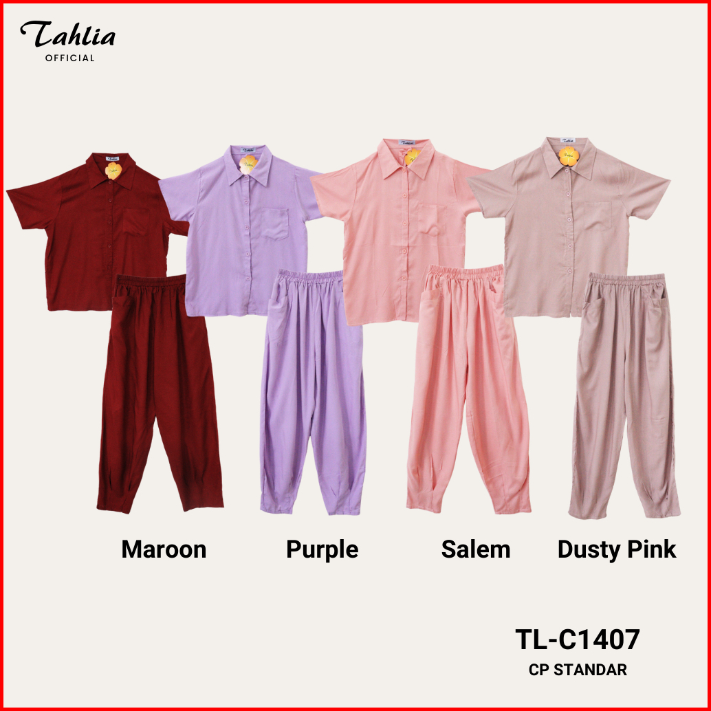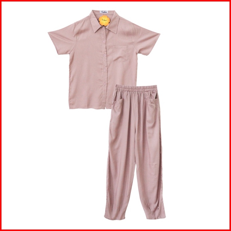 Tahlia Piyama Motif Polos Standar - Rayon Pyjamas Set Tangan Pendek Rianti Tl-c1407
