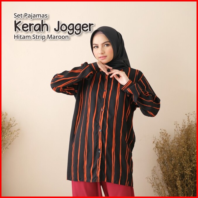 Melika - Set Setelan Pajamas Muslim Kerah Celana Jogger Motif Bahan Rayon