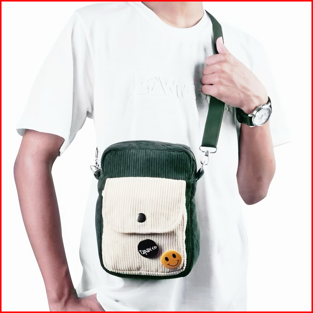 Tapaxco Tas Selempang Danito - Mini Slingbag Uniseks Tas Pria Wanita Corduroy Polos Tapax I Free 2 Bross