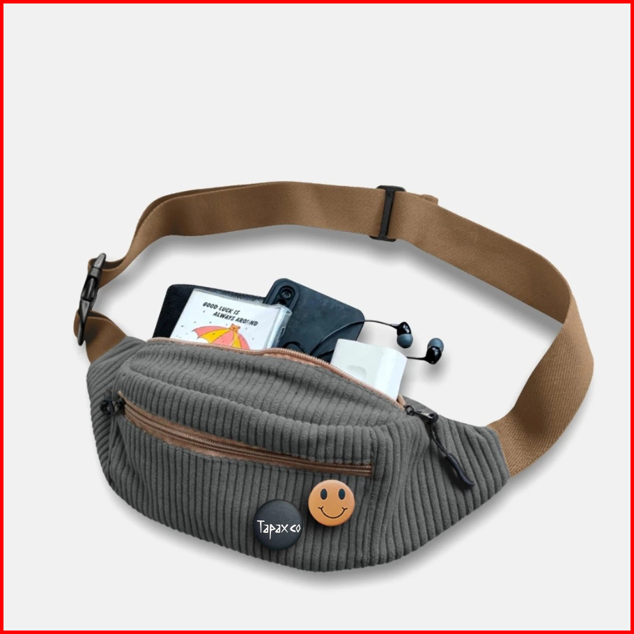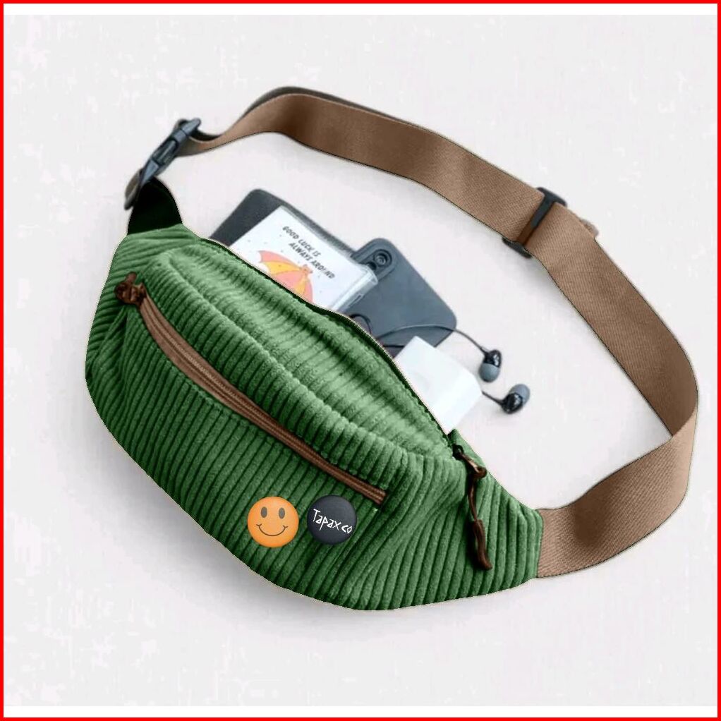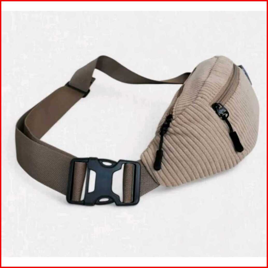 Tapaxco Tas Selempang Pria Corduroy Dheo- Waistbag Corduroy Cowok Tas Pinggang Uniseks Kasual Polos Free 2 Pin Bros