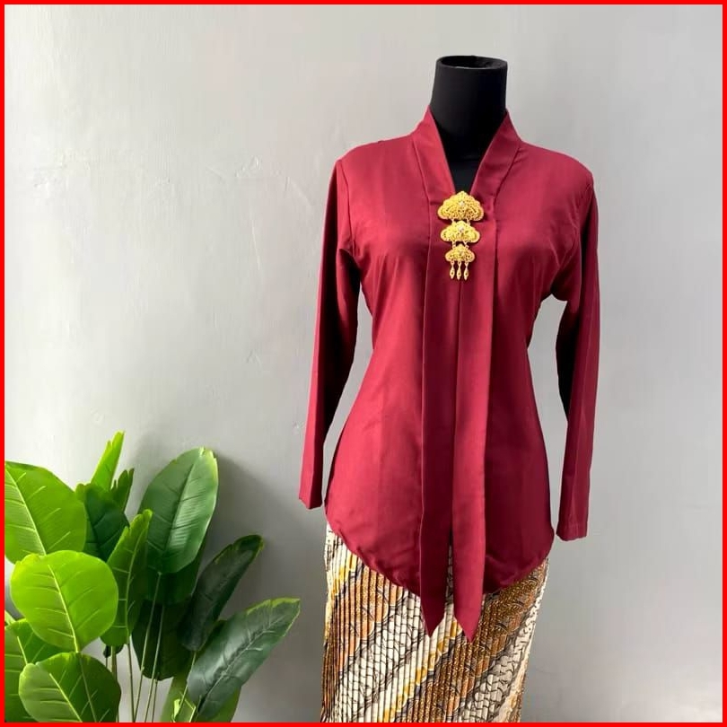 Kebaya Kartini Modern Atasan Polos Lengan Panjang Kain Katun Mikro Premium Termurah