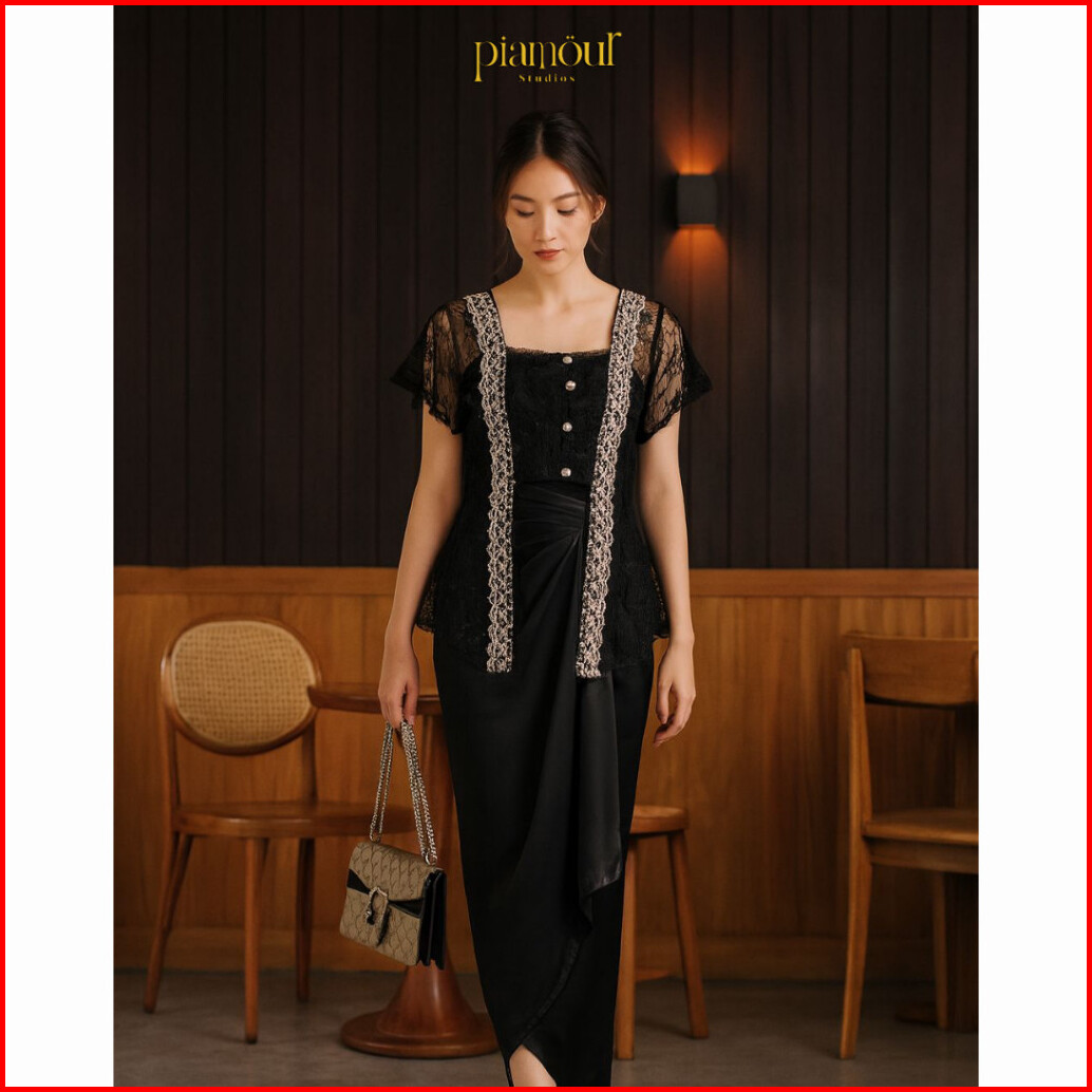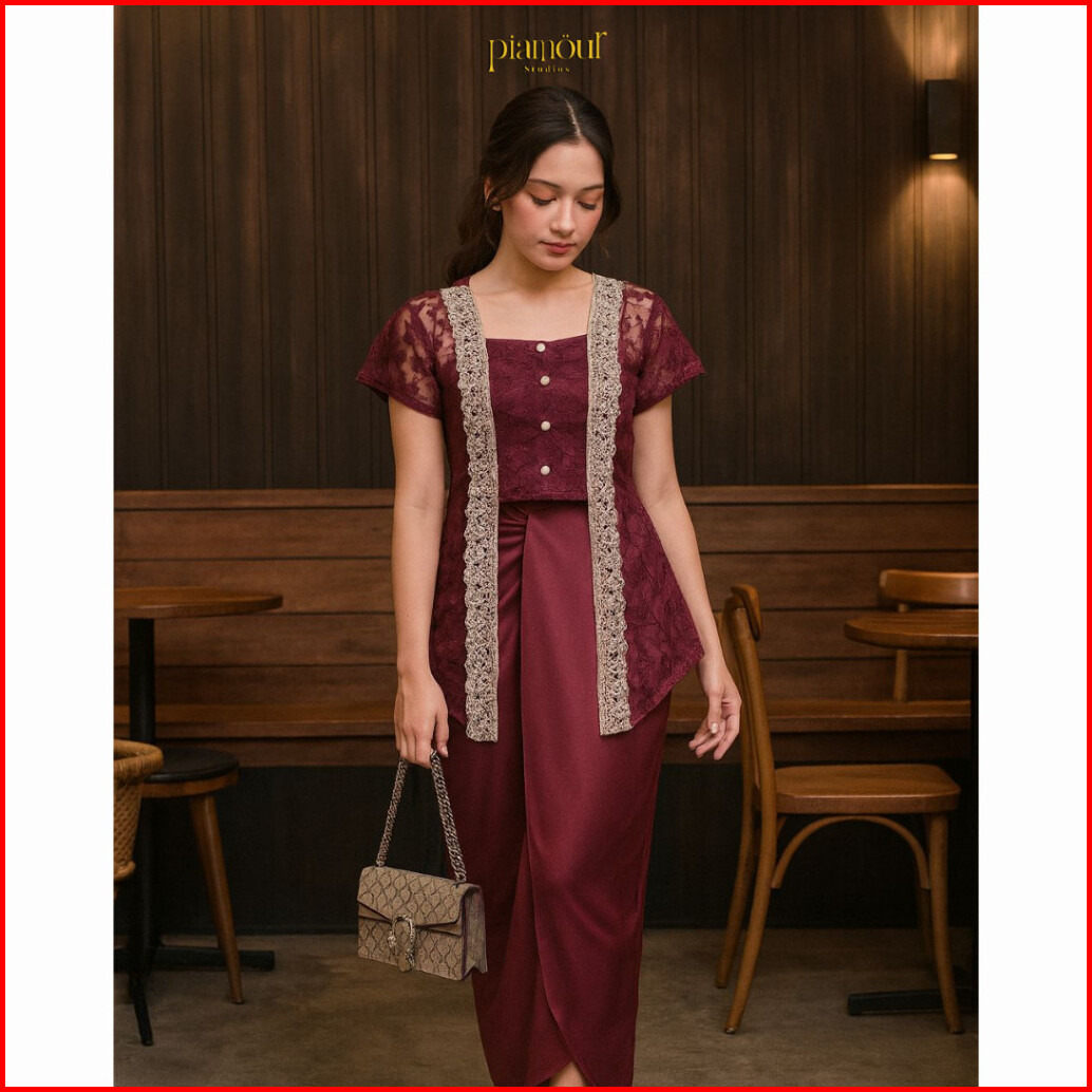 Paket 5in1 Hana Top Kebaya Kutubaru Modern Brukat Lace Tile Premium Kekinian Elegan Baju Kondangan Wanita One Set Rok Li
