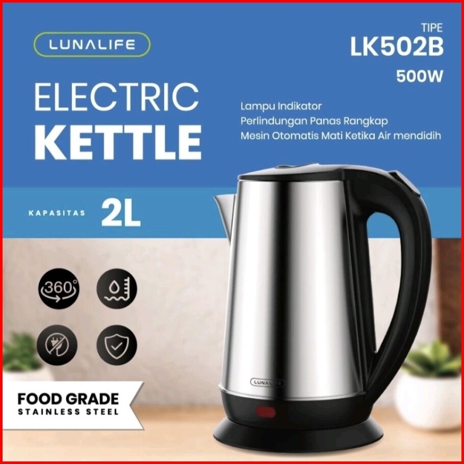 Teko Listrik Pemanas Air Lunalife Lk502b 2 Liter Ketel Listrik Otomatis Lunalife Lk 502b 500w