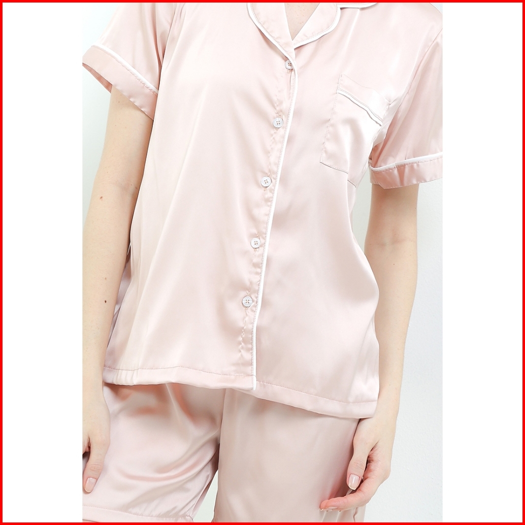 Set Pyjama Ladies Sleepwear 293 Satin Salem Lengan Pendek Celana Pendek Sepaha 52502 21012 Pajamas Baju Tidur Wanita Kan