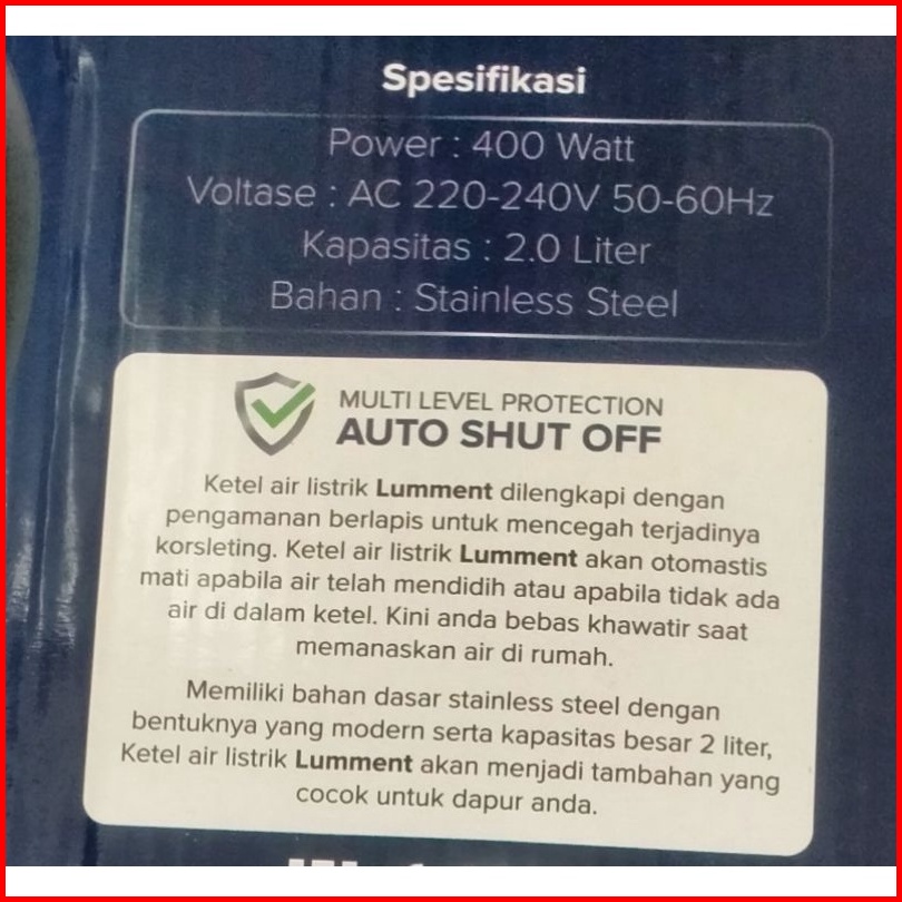 Teko Listrik Kettle Listrik 2 Liter Lumment Kl601