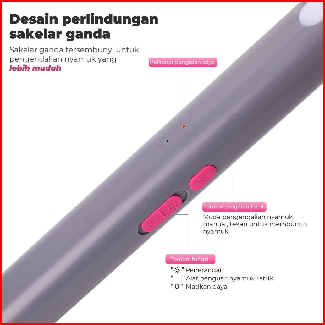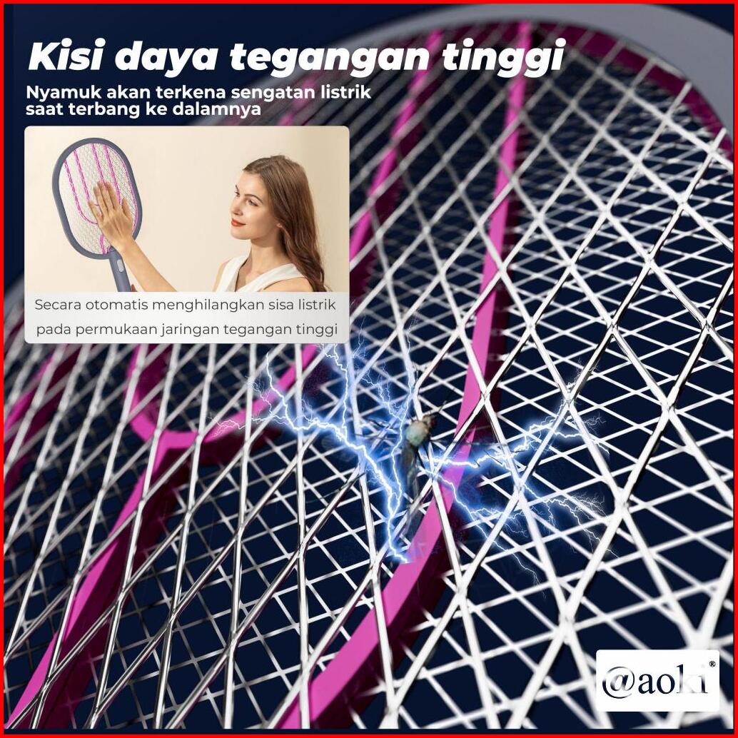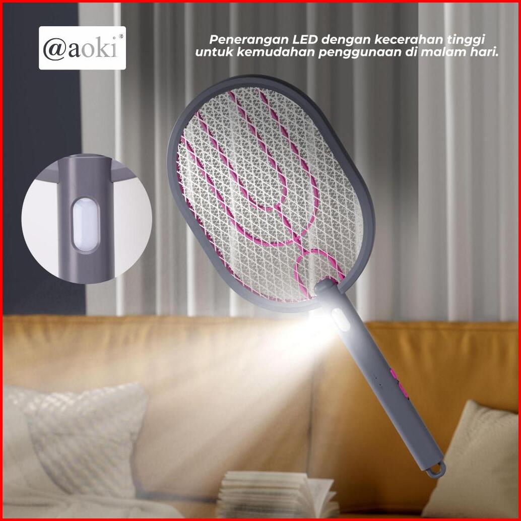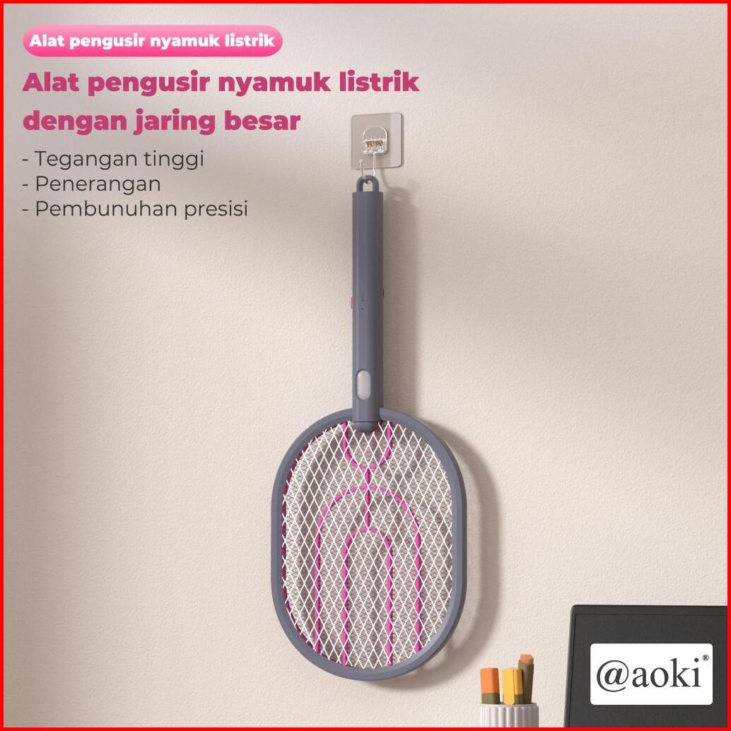 Aoki Raket Nyamuk Elektrik Jaring Besar 1200mah - Usb Type-c Baterai Tahan Lama Desain Stylish
