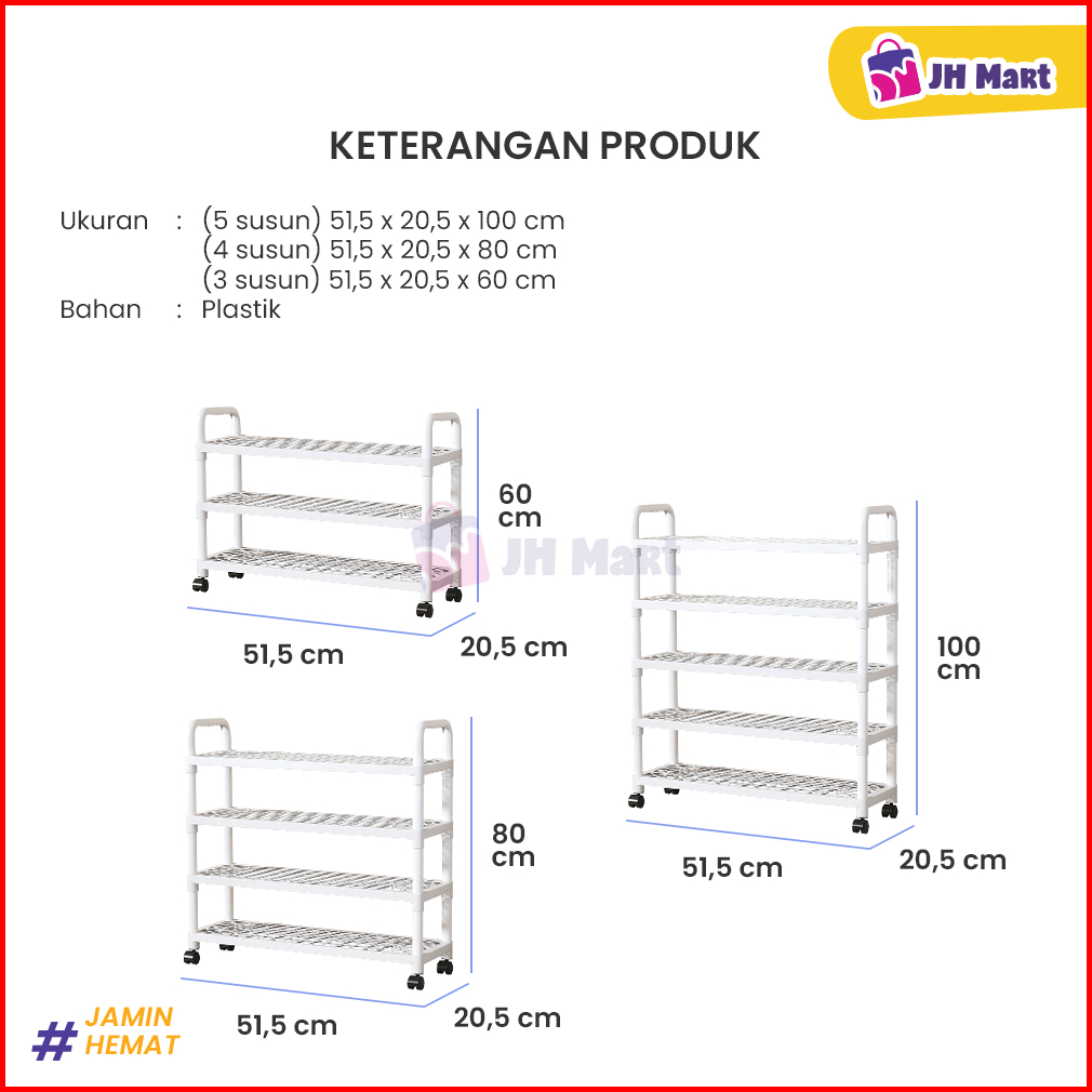 Jhm - Rak Sepatu 5 Susun Dengan Roda Serbaguna Minimalis Rak Sandal Tempat Sepatu Portable Hemat Ruang