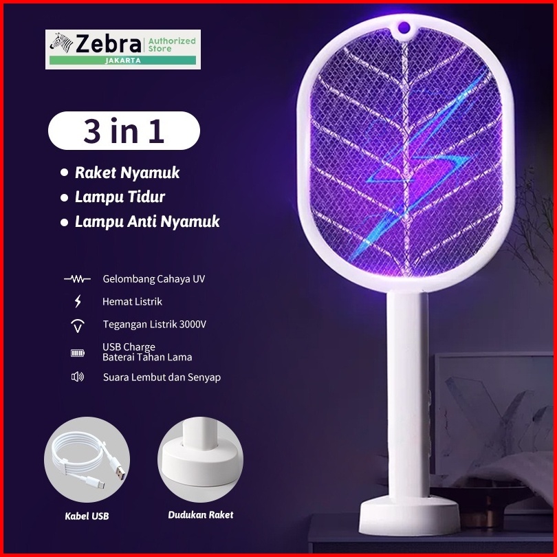 Zabra Raket Nyamuk 3 In 1 Elektrik Charger Usb Insect Killer Raket Nyamuk Standing