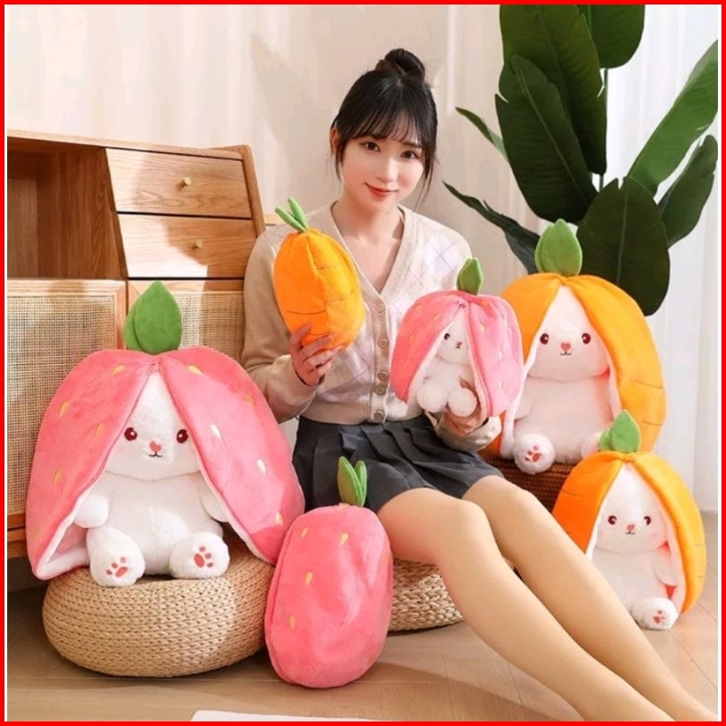 Boneka Kelinci Strawberry Wortel Mainan Flip Lucu Mewah Telinga Panjang Buah Bunny Rabbit 30cm Bahan Halus Sni