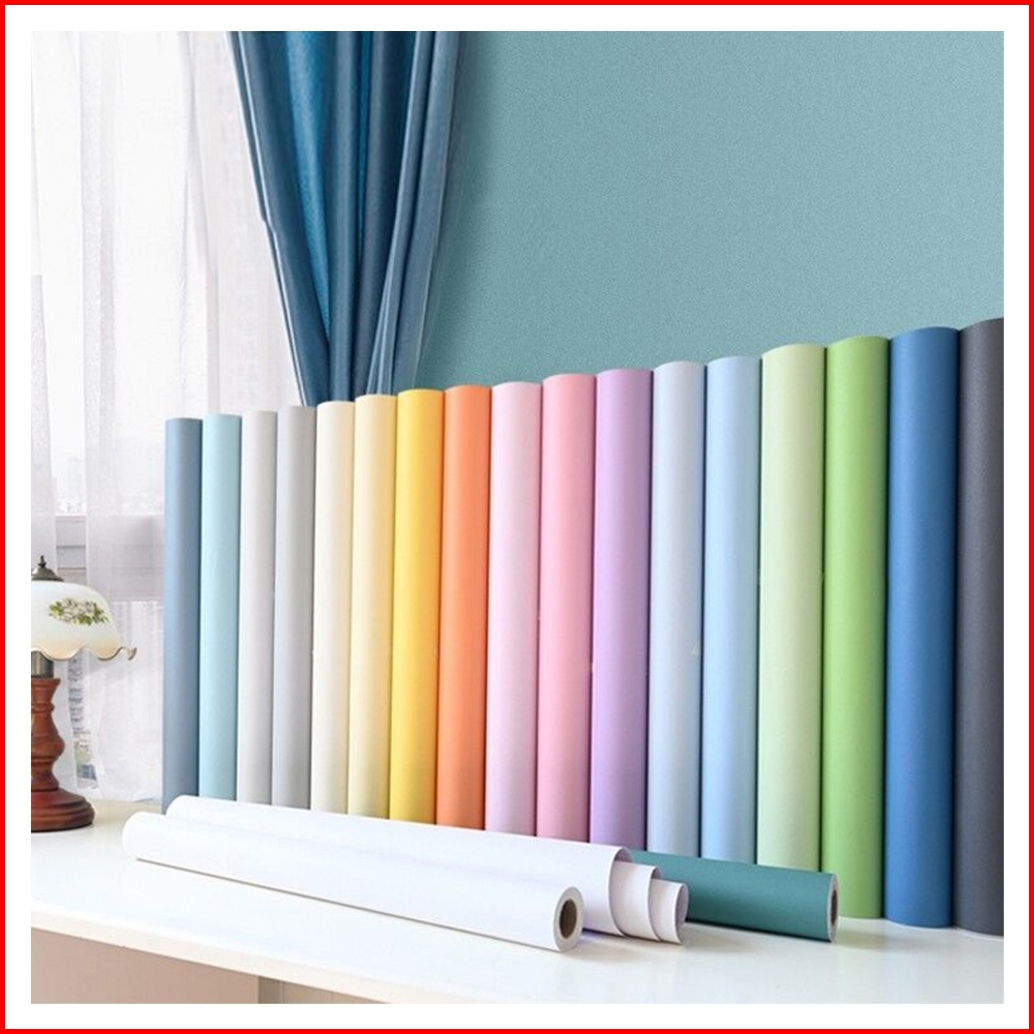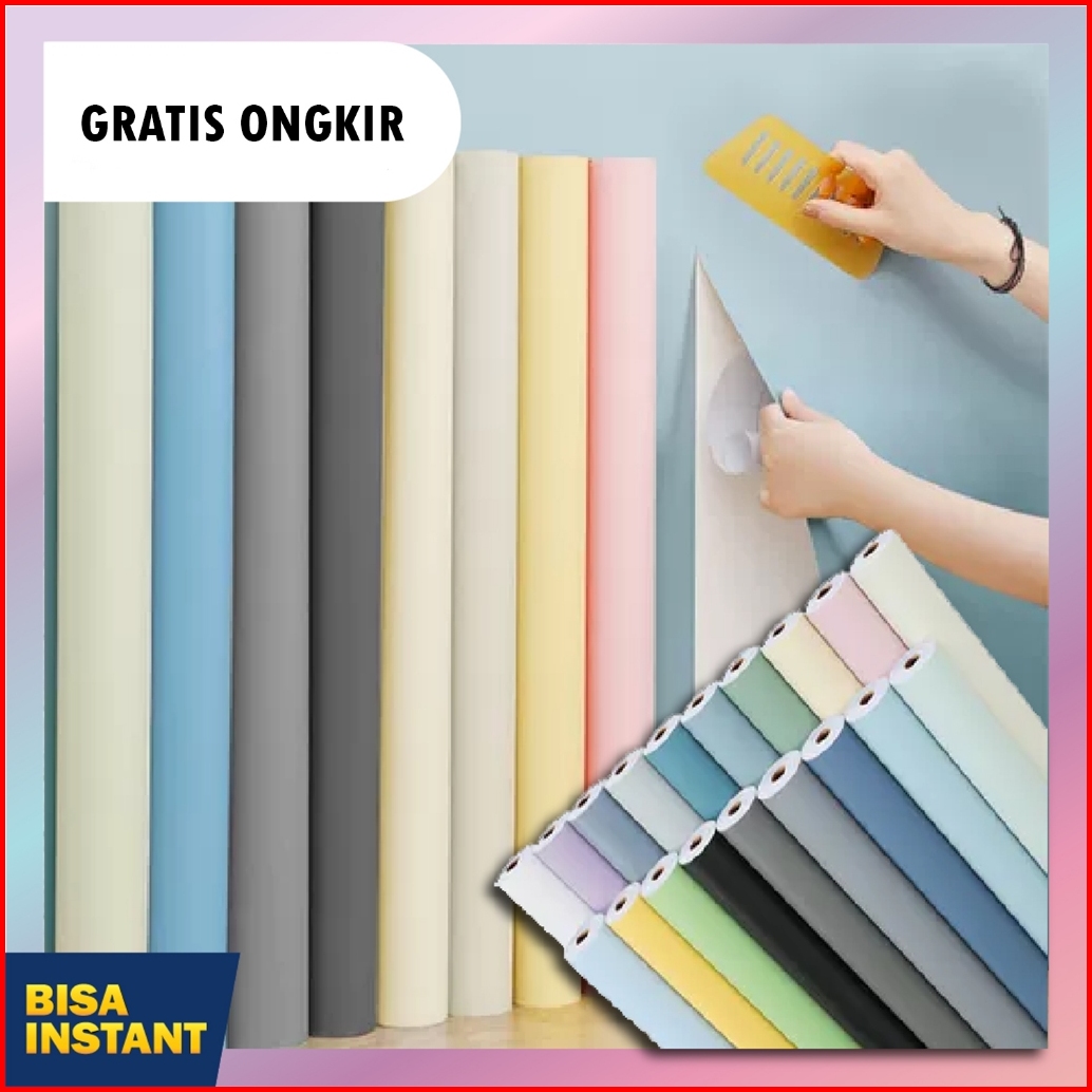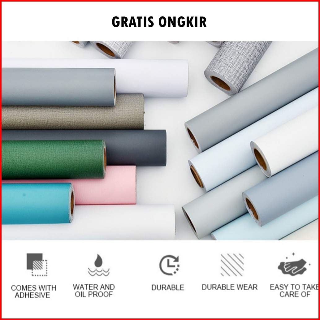 Home Living Wallpaper - Walpaper Sticker Dinding Motif Polos Berserat 1 Roll Utuh