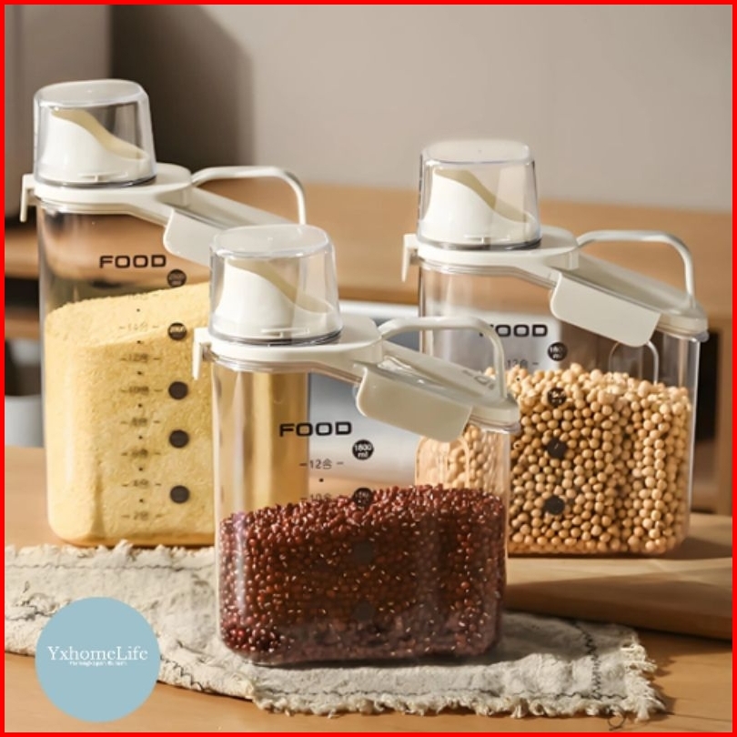 Toples Storage Jar Sereal Beras Biji-bijian Tepung Botol Minyak Anti Tumpah 1 8l 2 5l Transparan