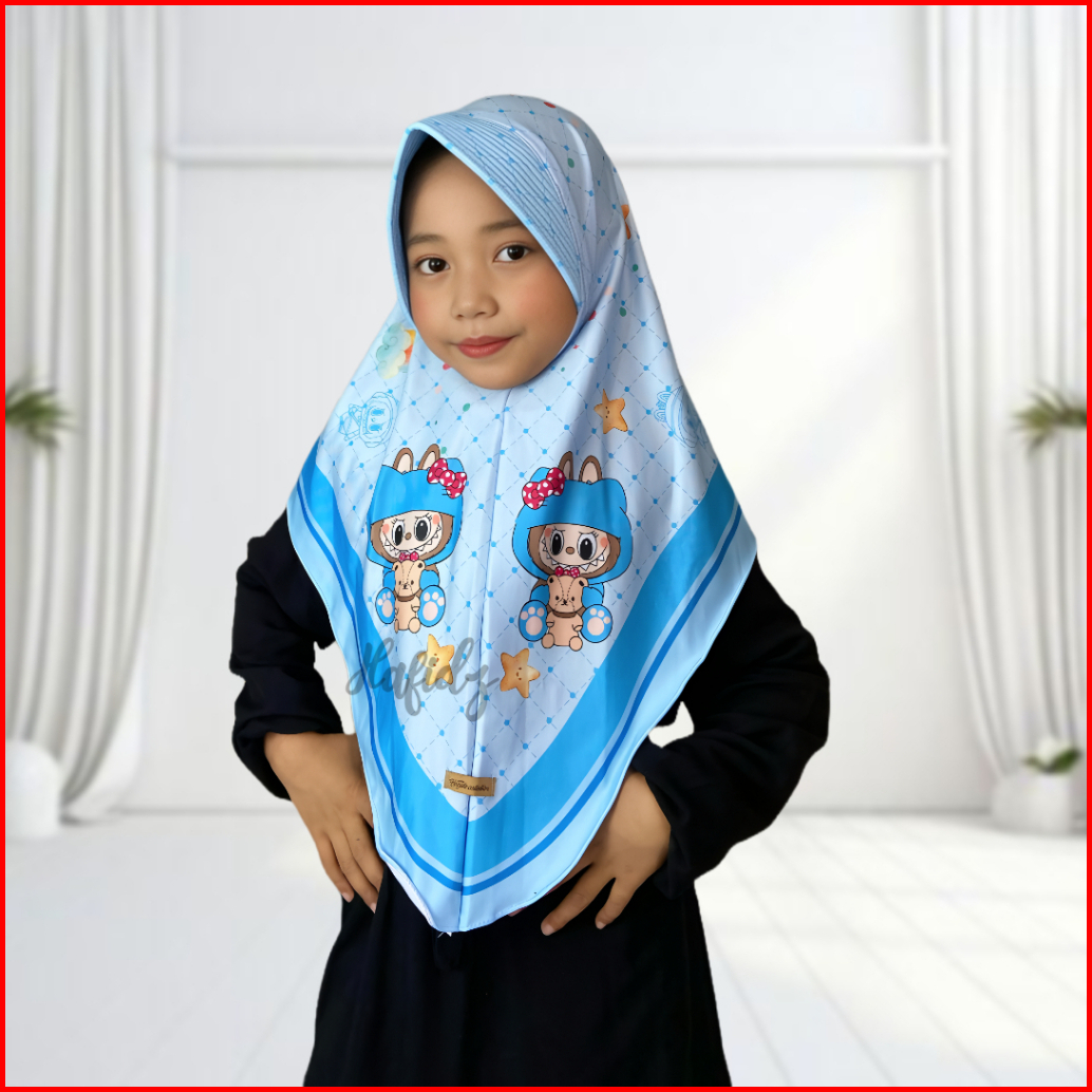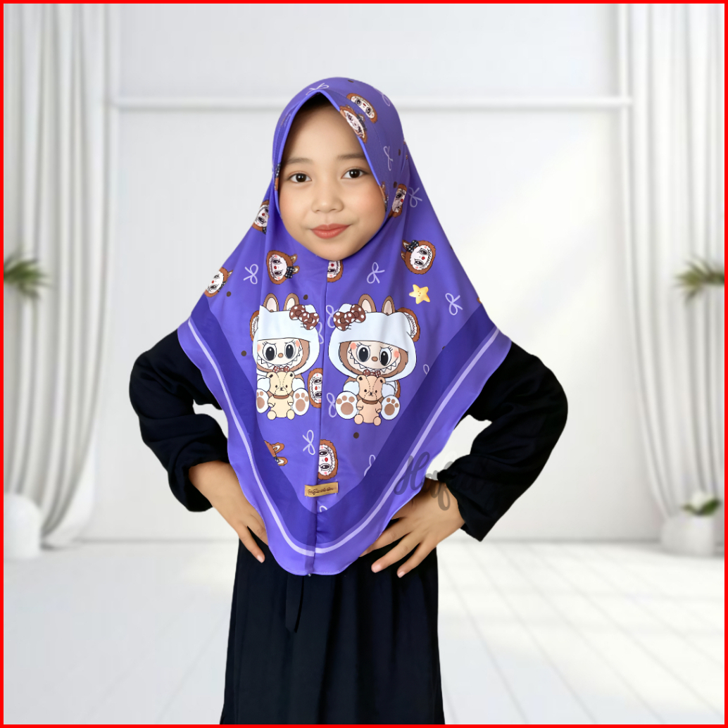 Bergo Motif Anak Karakter Labubu Terbaru Kerudung Anak Kekinian Motif Karakter Jersey