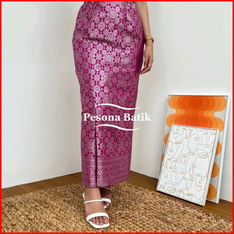 Pesona Batik-rok Songket Span Jadi Karet Kiri Kanan Resleting Belakang Ukuran