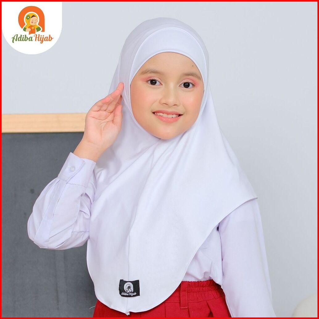 Adiba Hijab - Kerudung Anak Malay Jersey Baloon Sekolah Putih