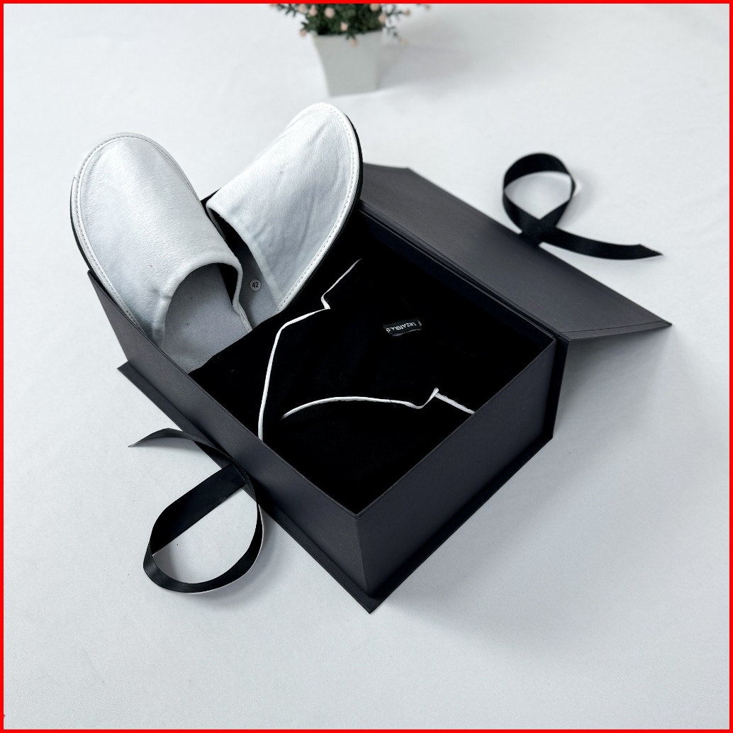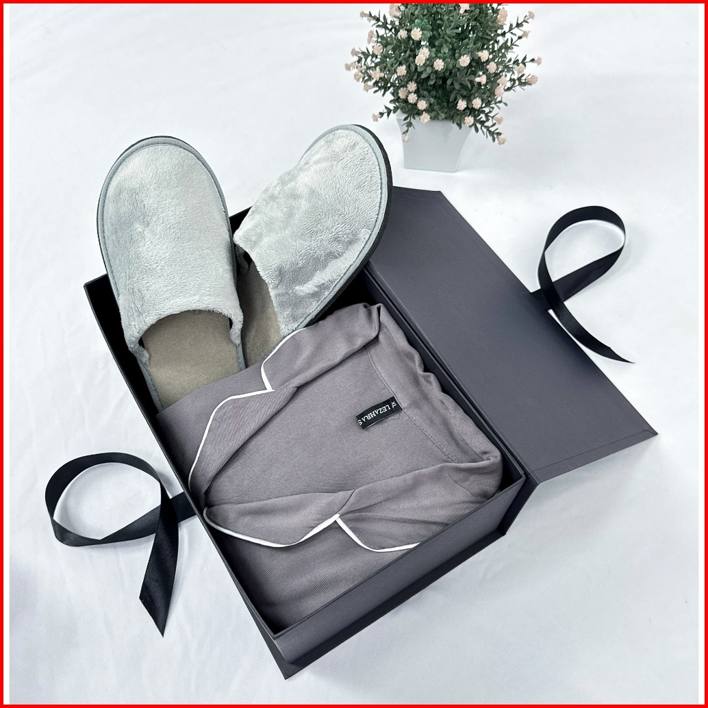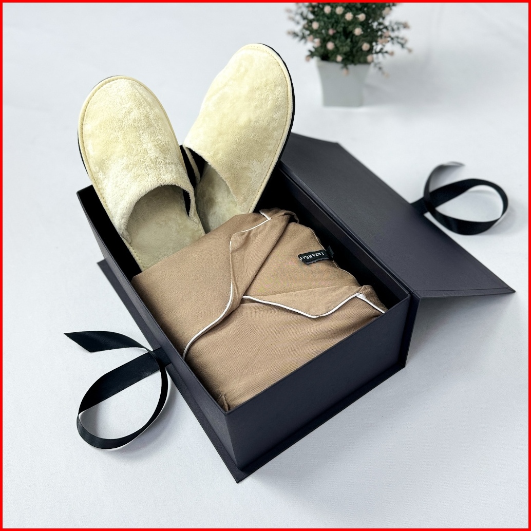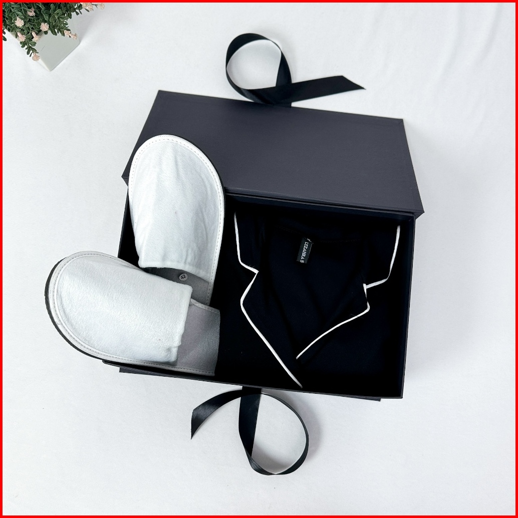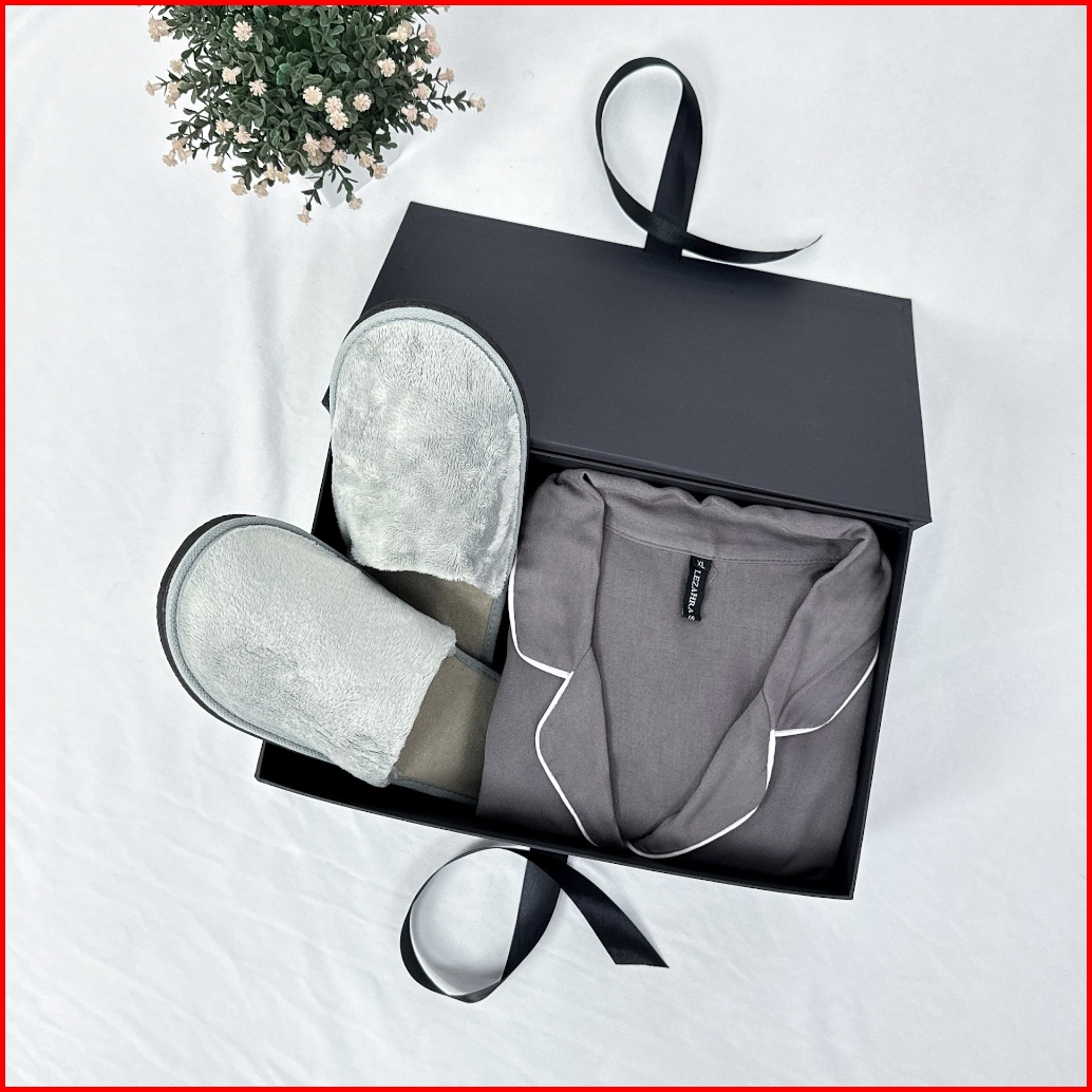 Paket Eksklusif Hampers Gift Premium Piyama Pria Wanita Setelan Baju Celana Pendek Soft Cotton Rayon Twill Sendal Slip O