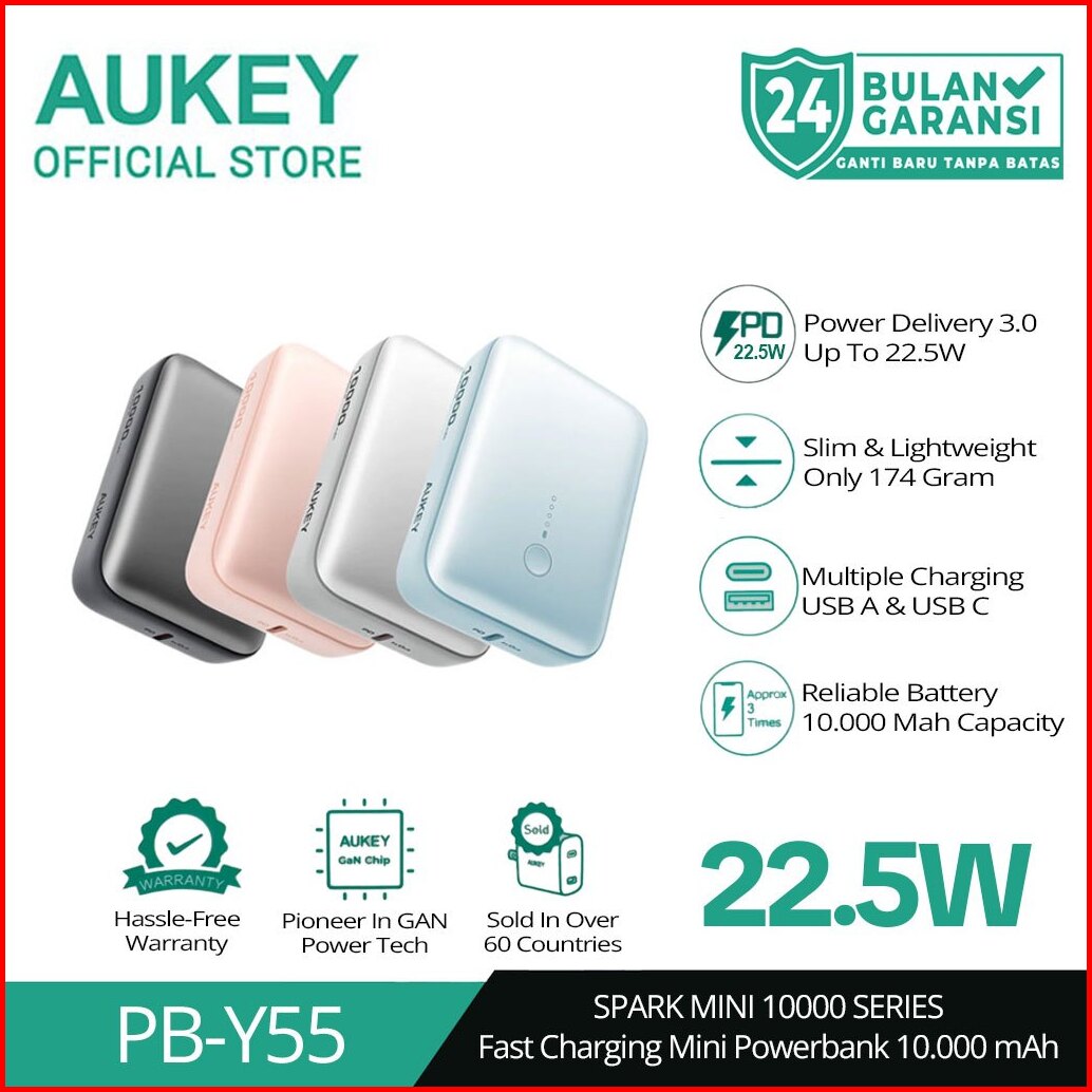 Aukey Mini Powerbank 10000 Mah 22.5 W Fast Charging Type C Usb A Mini Sparking Series Pb-y55
