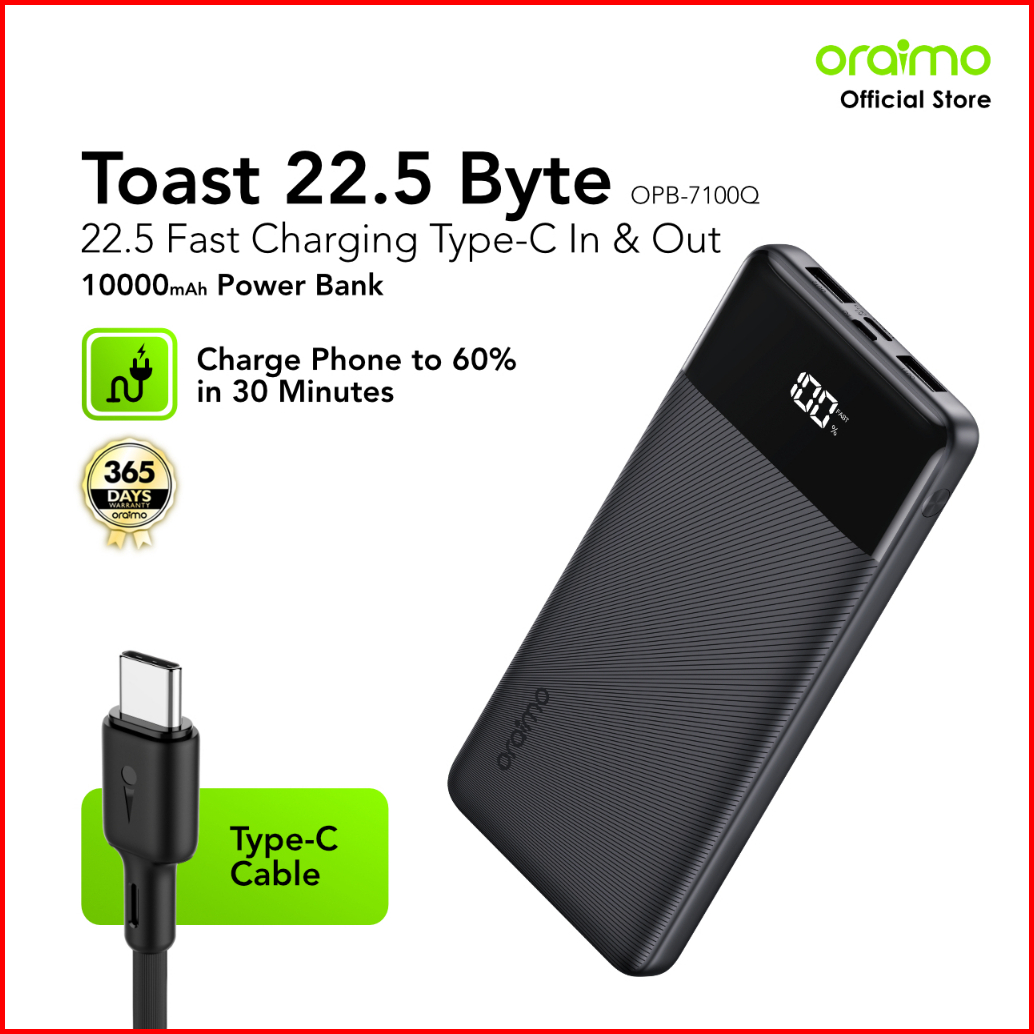 Oraimo Powerbank 10000 Mah Kapasitas Nyata Real Capacity Toast 22.5 Byte Opb-7100q Led Display Dual Port Usb Ganda Pengi