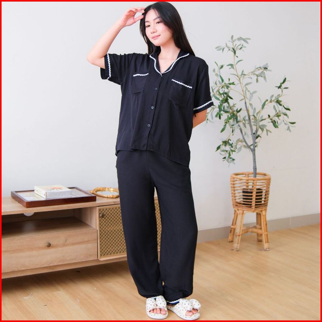Aurae - Faiza Setelan Piyama Rayon Wanita Lengan Pendek Celana Panjang Nyaman