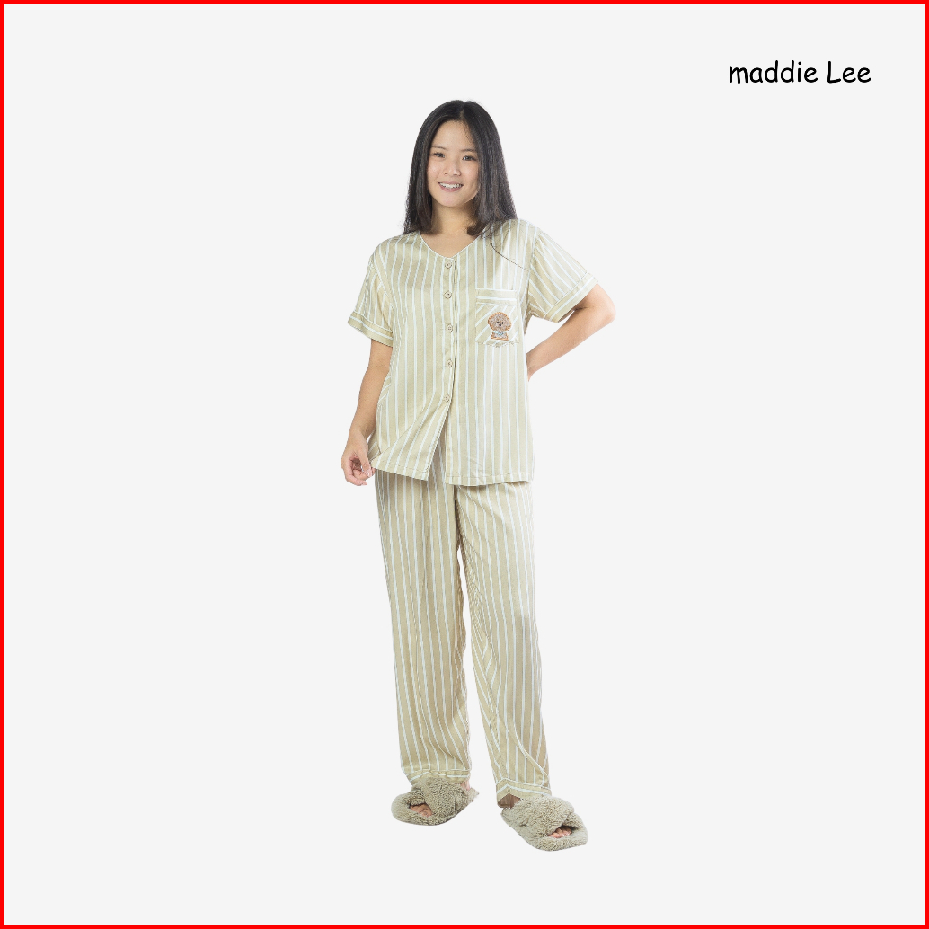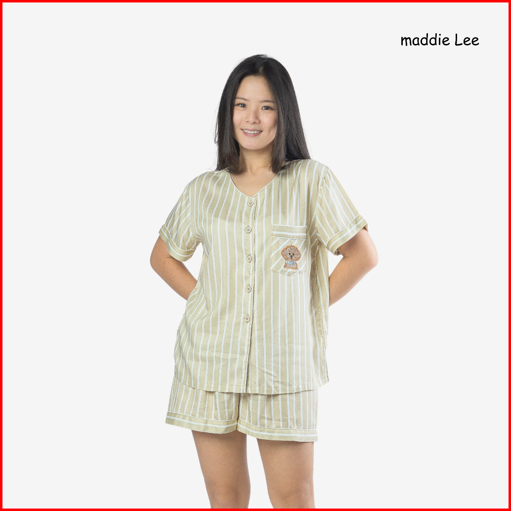 Maddie Lee Piyama Wanita Dewasa Danisa Stripe Bord Puddle Puppy