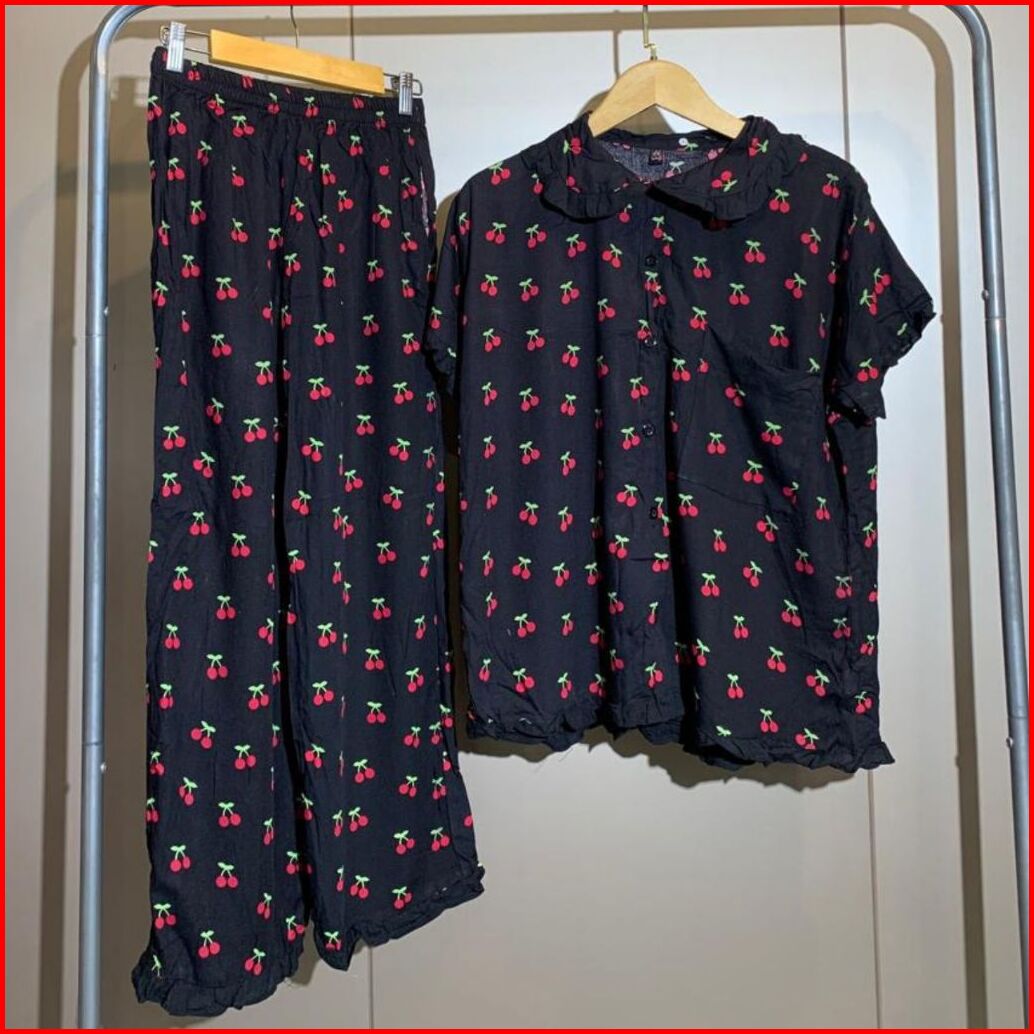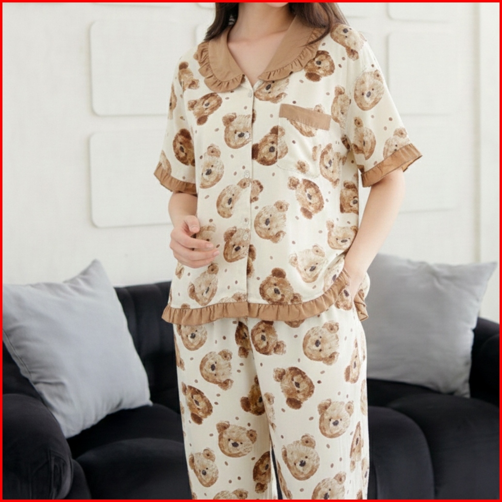 Aurae Qiana Piyama Wanita Lengan Pendek Rayon Viscose Set Atasan Celana Panjang