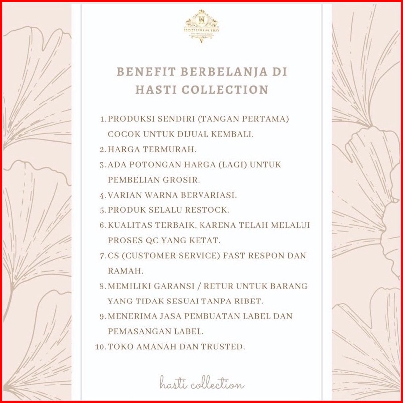 Hitam, Broken white, Nevy, Maroon, Dusty, Nude, Hijau Tua, Grey, Silver, Polisi, Cokelat, Millo, Mocca, Khaki, Merah cabe, Denim, Lemon, Purpel, Wardah, Powder, Fuschia, Matcha, Mustard, Plum, Teracota, Hijau botol, Mocca tua, Scrunchie