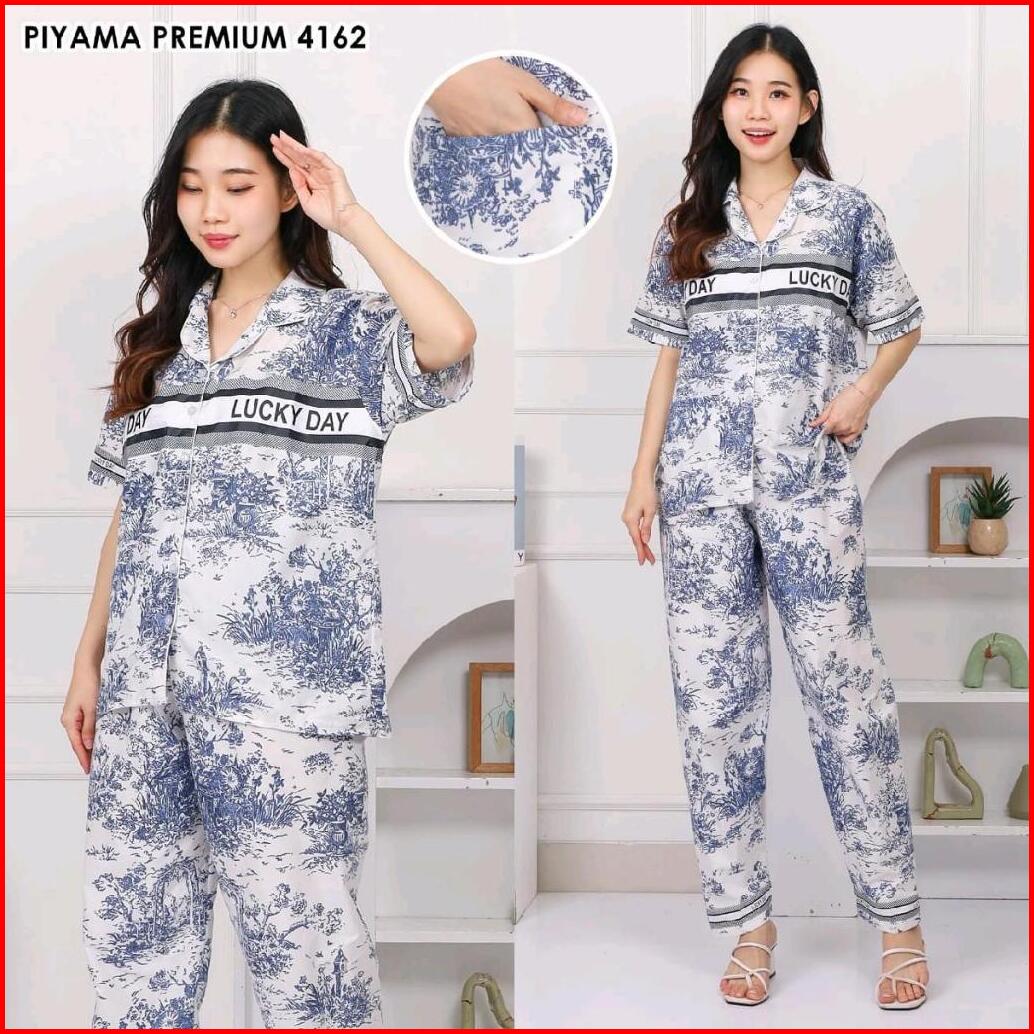 Gafesa - Pajamas Piyama Premium Poly Bamboe One Set Wanita Set Baju Tidur Wanita Lengan Pendek Celana Panjang