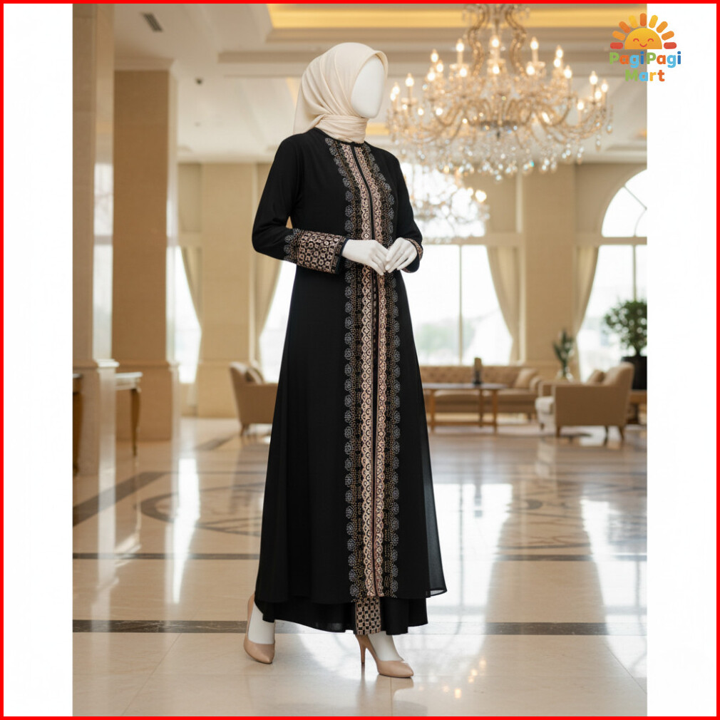 Abaya Hitam Turkey Premium Muslimah Kekinian Elegan Mewah Busui Friendly Umroh Kajian Harian 297