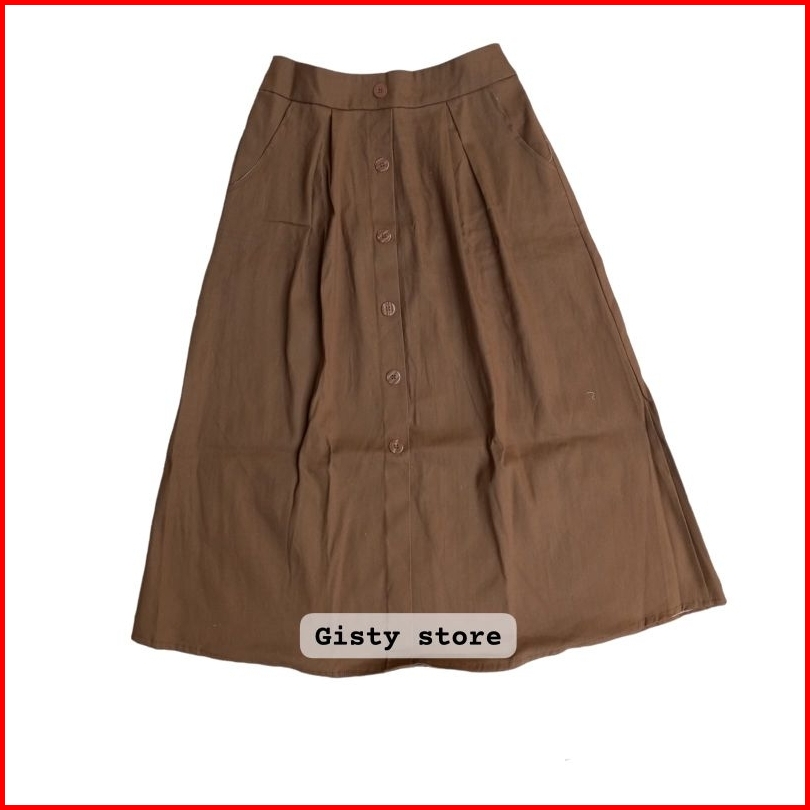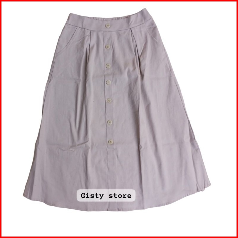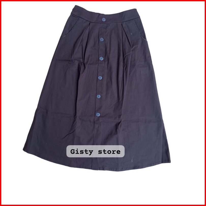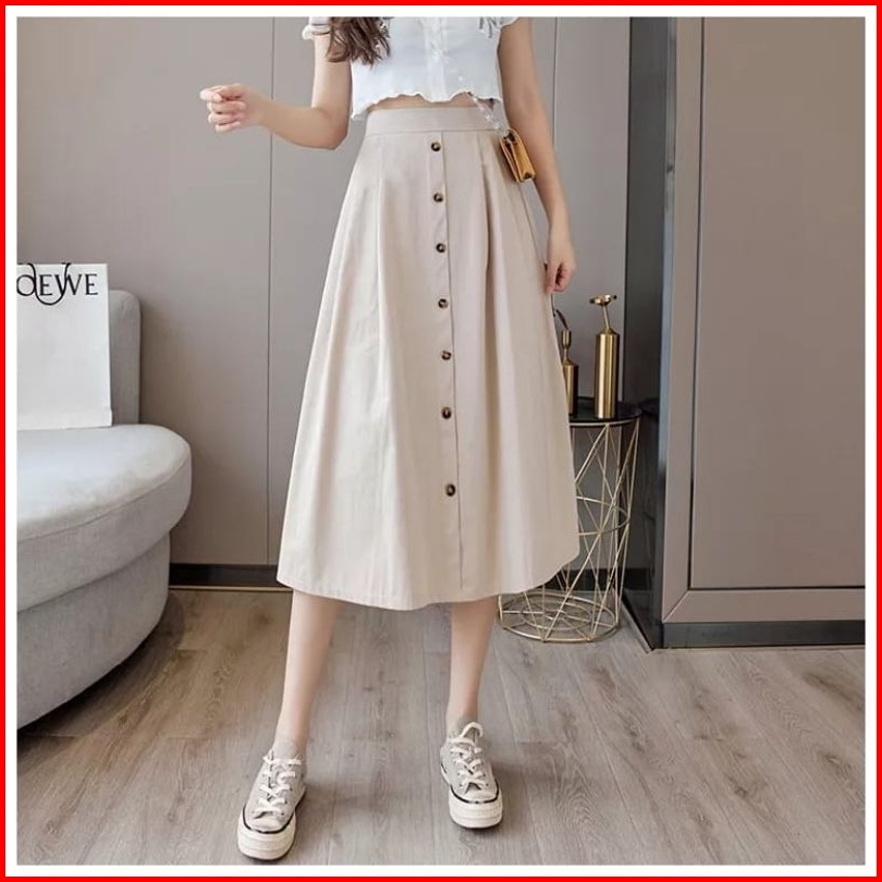Rok Midi Korean Style Model 7 8 Variasi Kancing Bahan Twill Combed Premium
