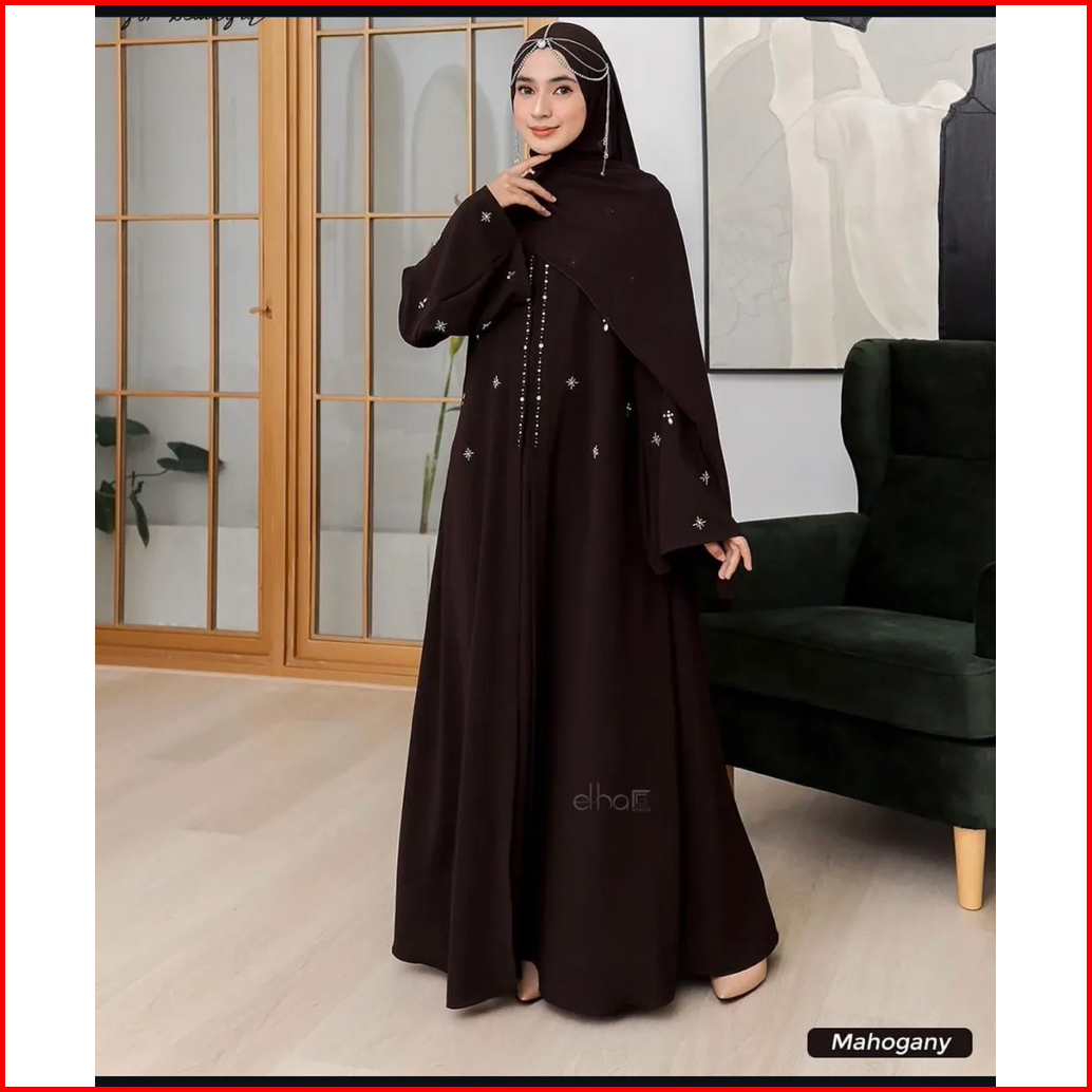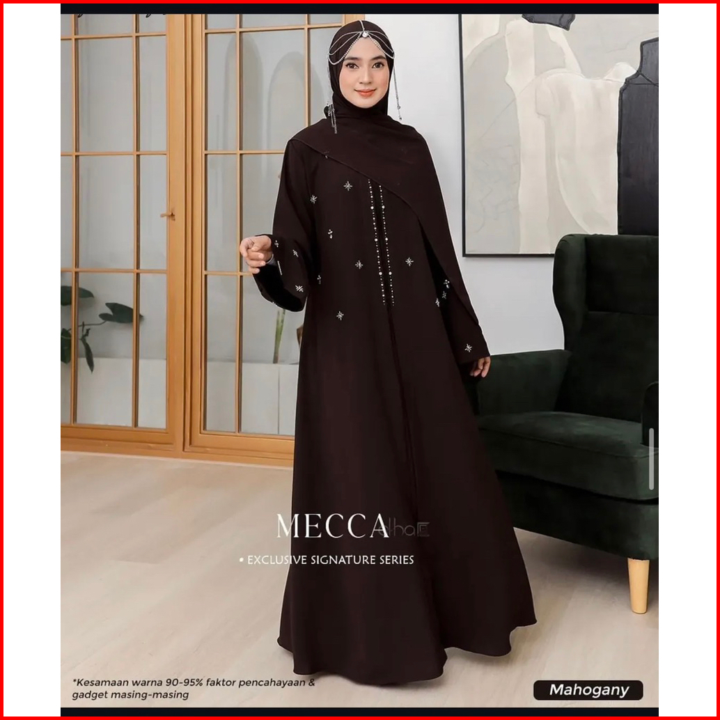 Mecca Gamis Dress Bahan Ceruty Baby Doll Full Furing Aplikasi Payet Mutiara Dress Busui Friendly Gamis Wanita Terbaru Ba