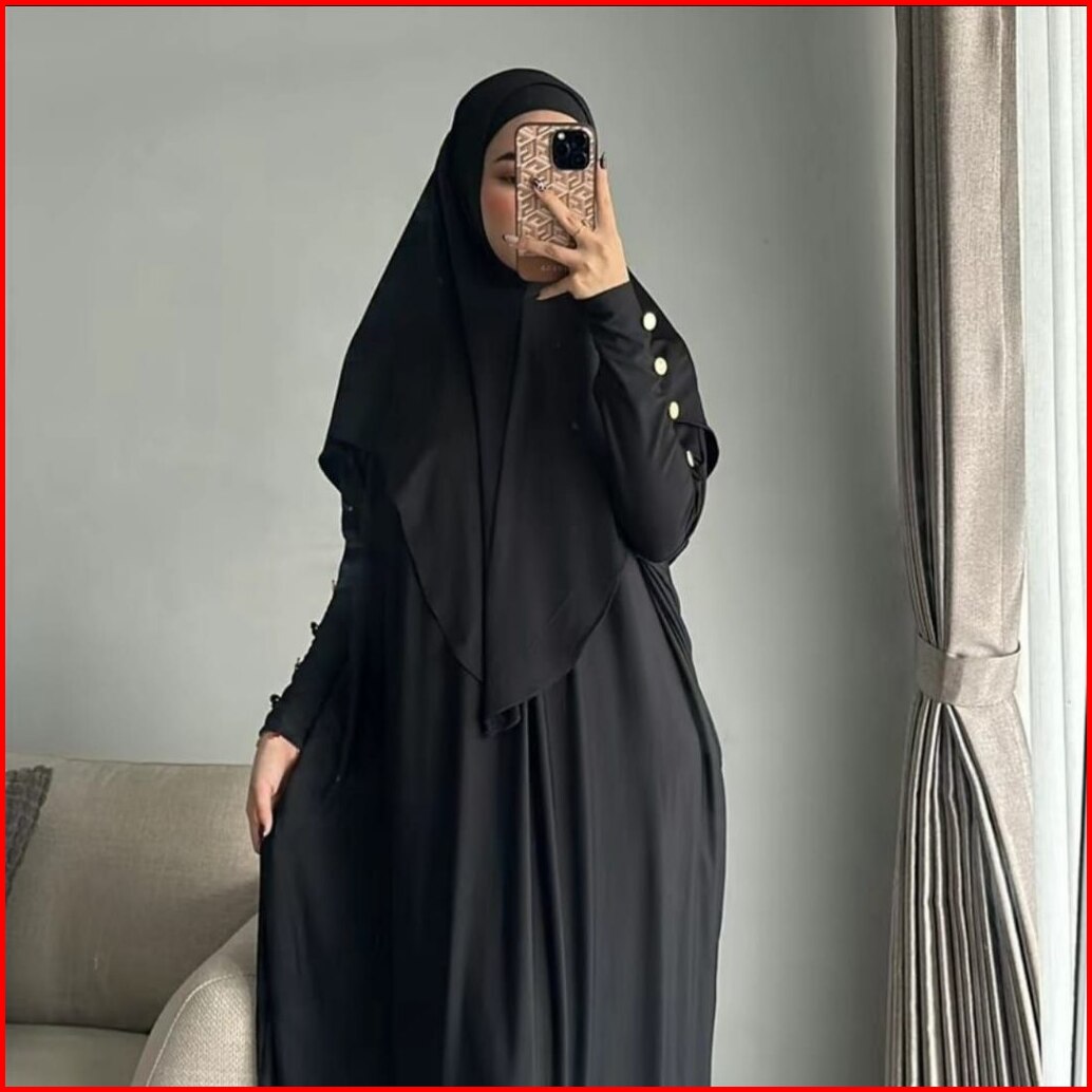 Gamis Set Bahan Jersy Farfati Free Bergo Syari Premium Lengan Kancing Inara Baju Muslim Terbaru
