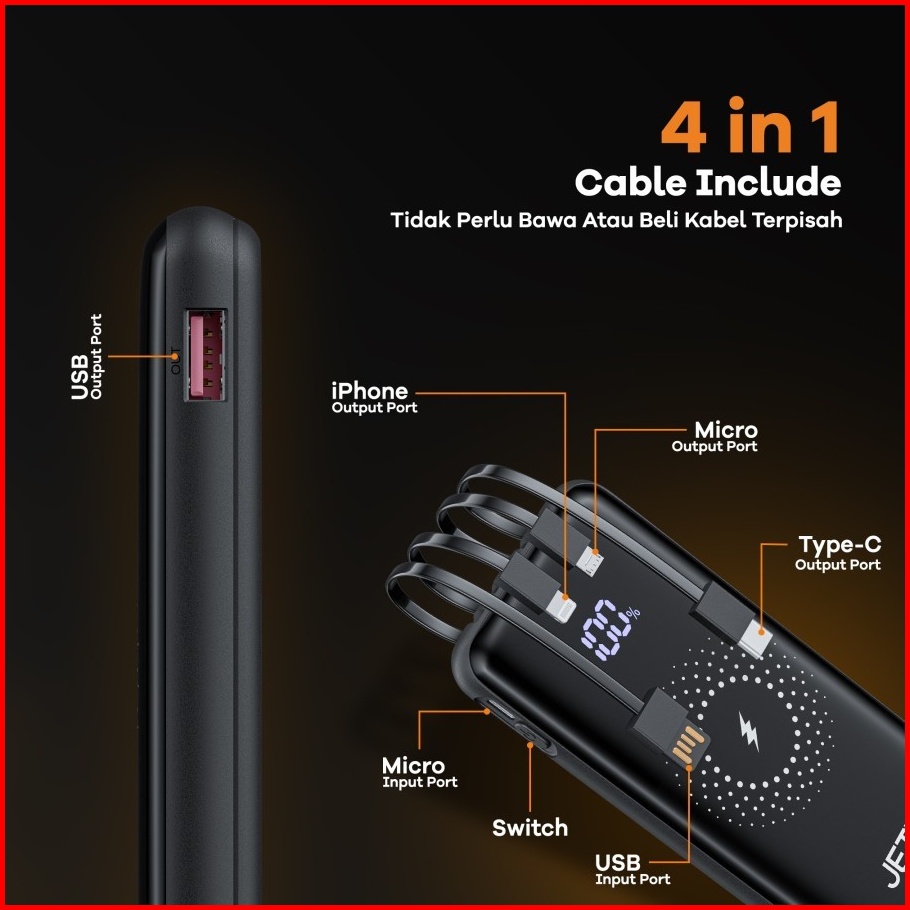 Jete A10 Wireless Powerbank 10.000 Mah Fast Charging Smart Iq 4 Cable
