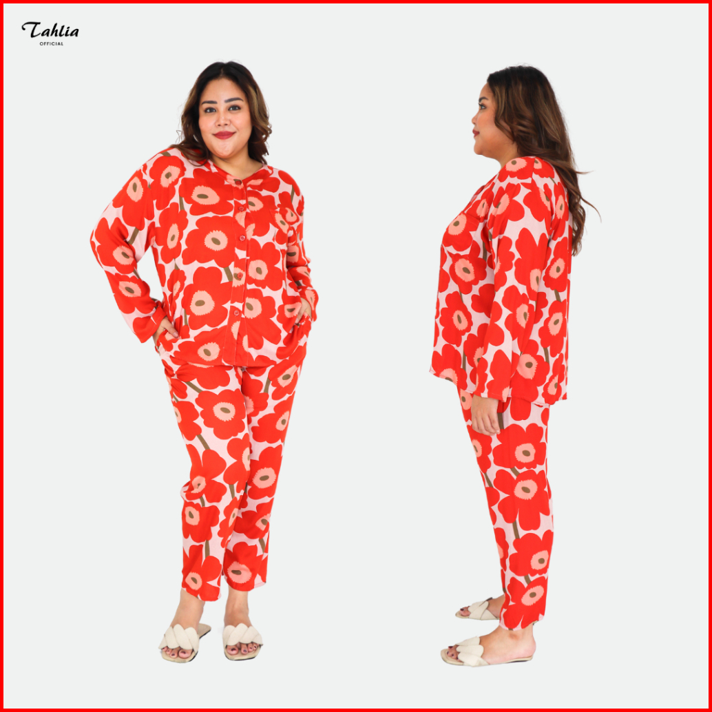 Tahlia - Hamun Tl-f0064 Piyama Set Motif Bahan Rayon Fit To Jumbo Tl-f0064
