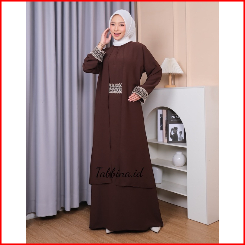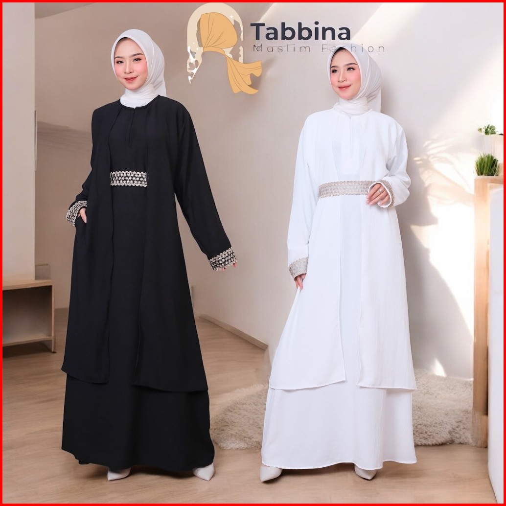 Tabbina Abaya Hitam Turkey Gamis Dress Muslim Wanita Kombinasi Renda Alaydrus Dress Arab Saudi Outer Menyatu Resleting D