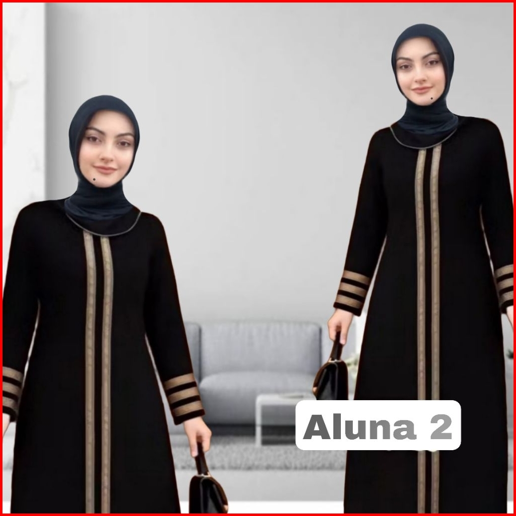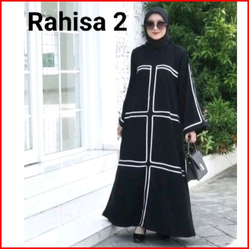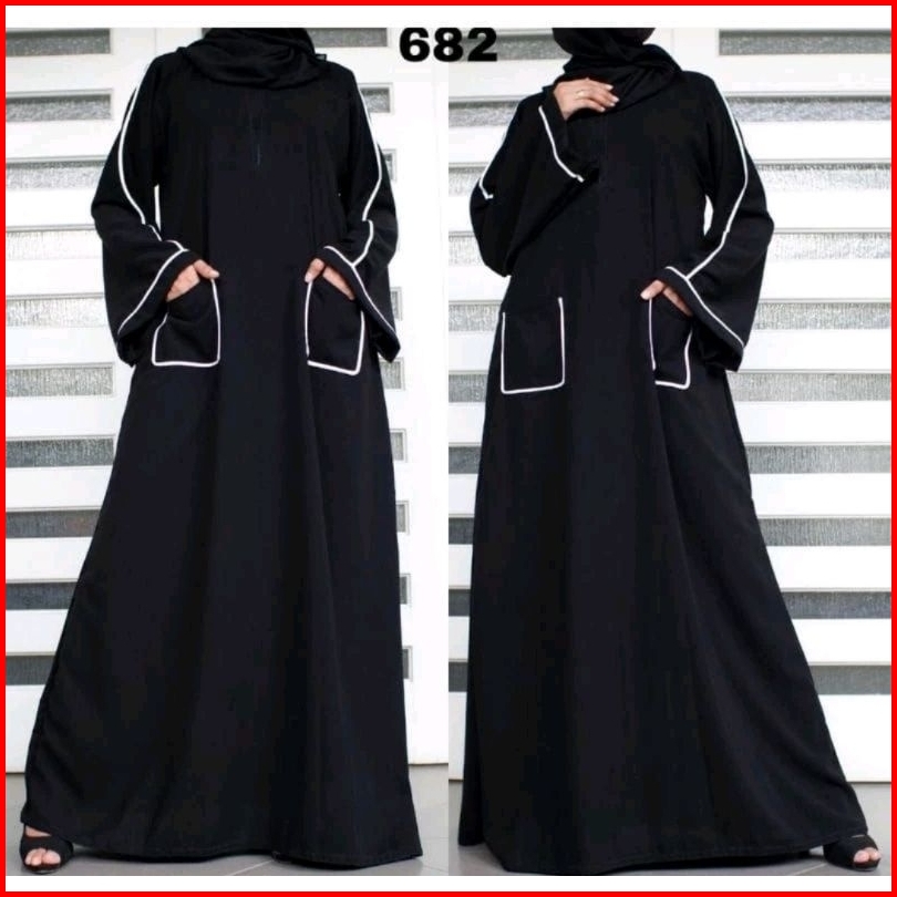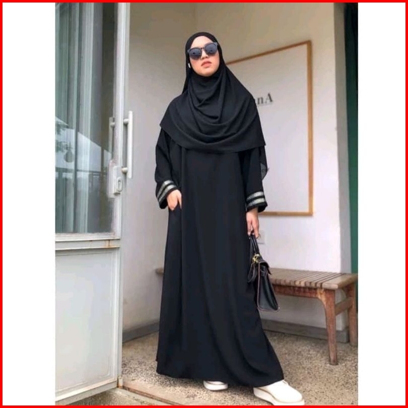 Abaya Hitam Polos Lis Panjang Bahan Saudi Jet-black