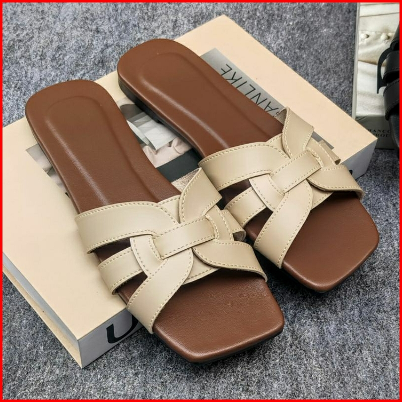 Sandal Teplek Slide Trend Fasion Wanita Terbaru Kekinian Sandal Flat