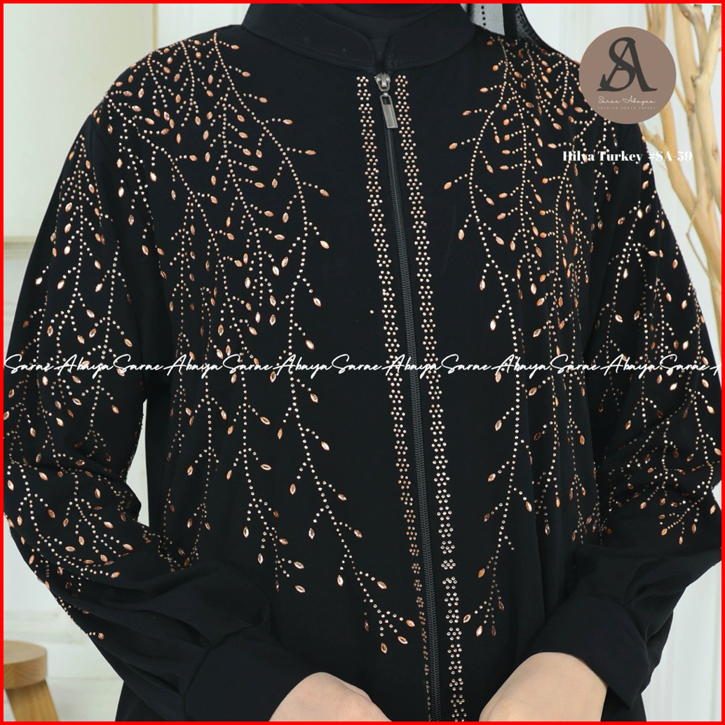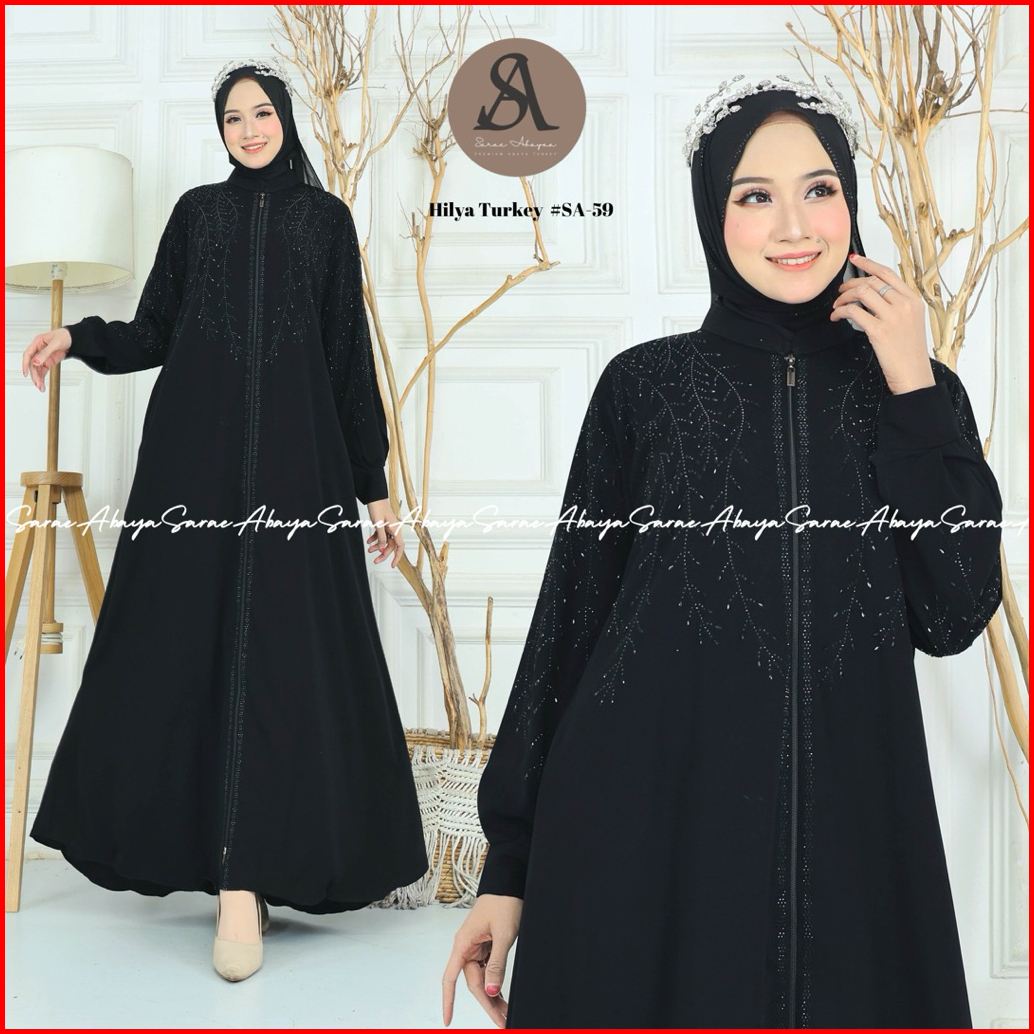 Sarae Abaya Turkey Premium Hilya Sa-59 Gamis Jetback Payet Arab Wanita Hitam Mewah Elegan Dubai