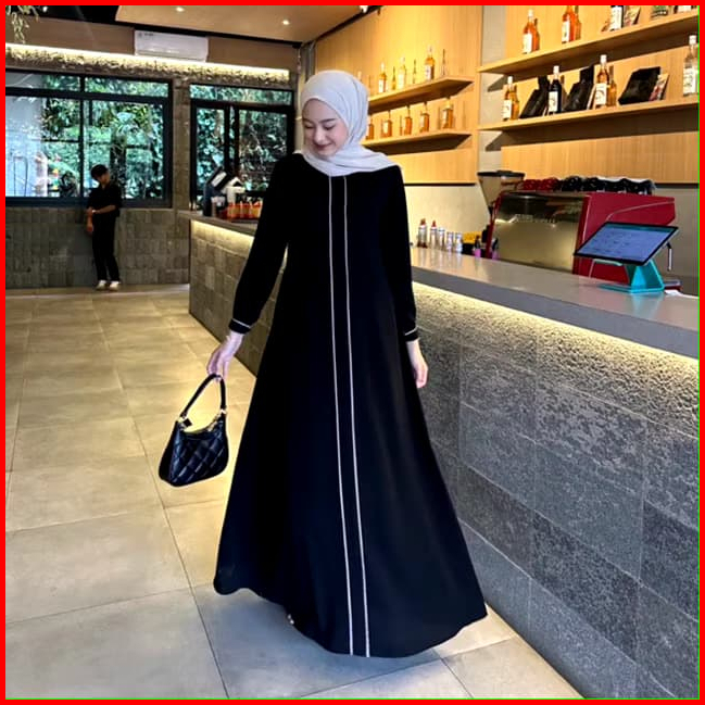 Yulianty Hijab - Gamis Aisyah Abaya Hitam Motif Lisban Ukuran M - Xxl Gamis Lebaran Wanita Remaja