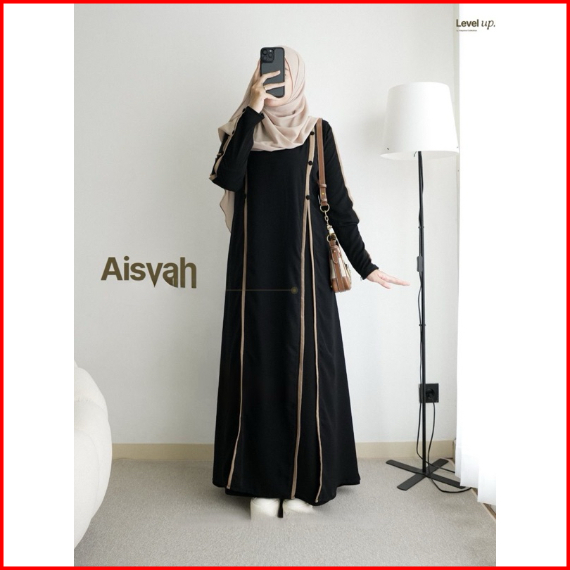 Raysila Collection Abaya Hitam Turkey Aisyah Gamis Syari Muslimah Jetblack Hitam Kombinasi Chiffon