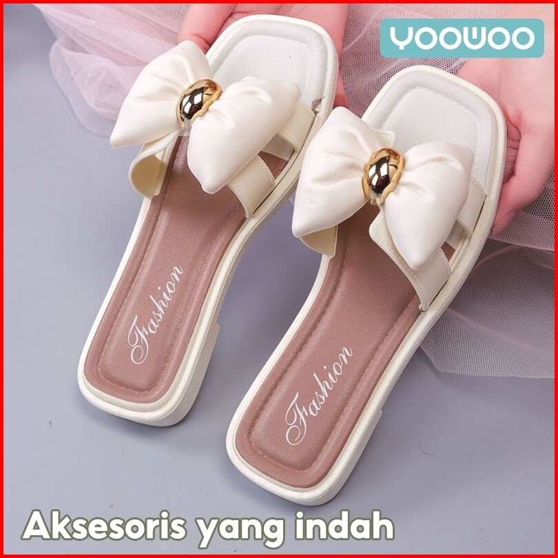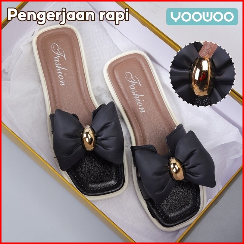 Yoowoo Sandal Wanita Kekinian Sandal Slip On Sandal Flat Sandal Selop Sandal Jelly Sendal Wanita Sandal Teplek Wanita Sa