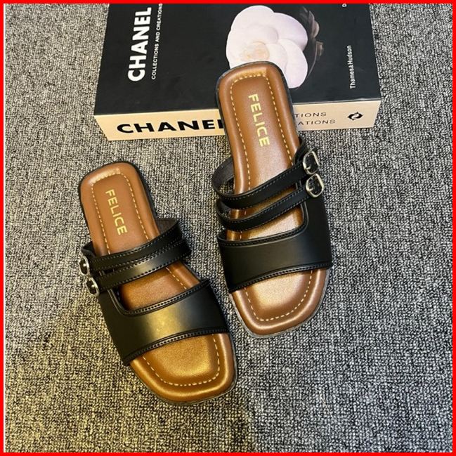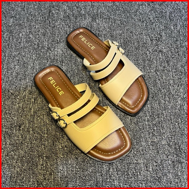 Felice - Sandal Cewek Teplek Flat Gesper2 Samping Sendal Wanita Kekinian Anti Selip Kode.02 Model Terbaru