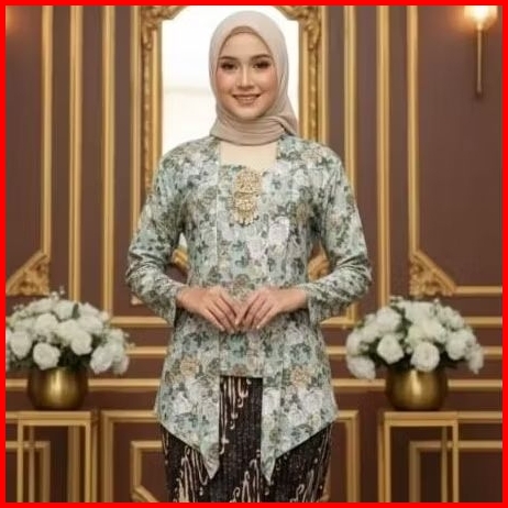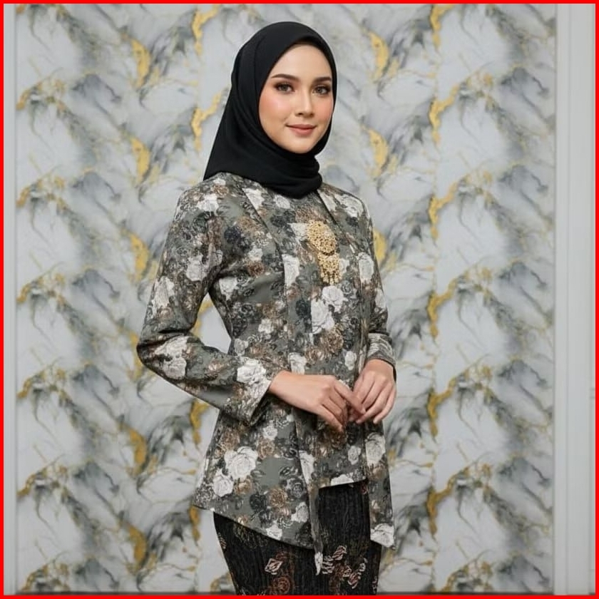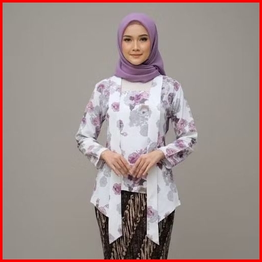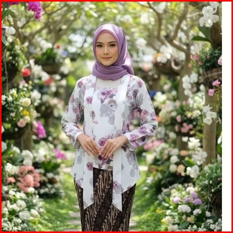 Zahrah Gallery - Kebaya Kutubaru Modern Jumputan Motif Bunga Bahan Katun Premium Kebaya Kutubaru Jumputan Bahan Katun Mo