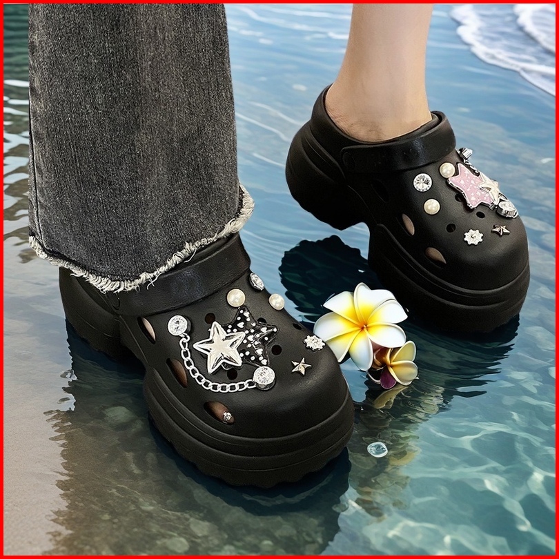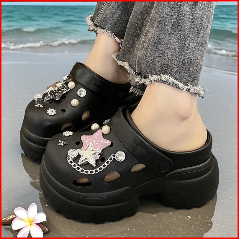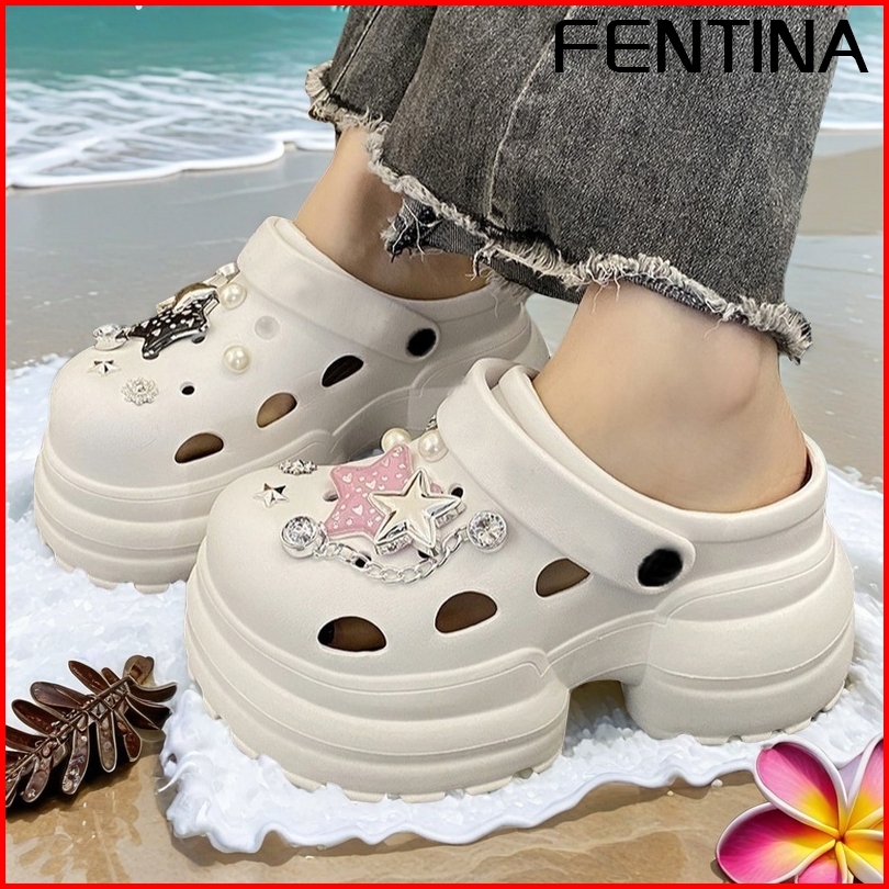 Fentina Sandal Kodok Wanita Kekinian Sandal Fuji Sandal Baim Wedges Sandal Jelly Wanita Tinggi Anti-selip