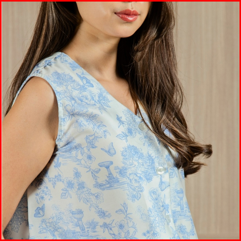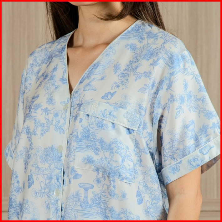 Talea Co - Piyama Wanita Organic Silk Baju Tidur One Set Motif Bunga - Dynasty