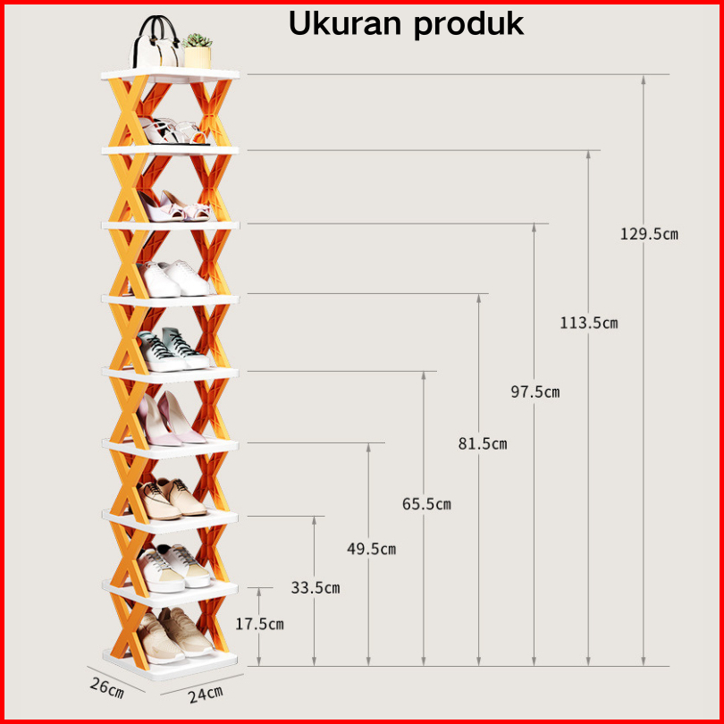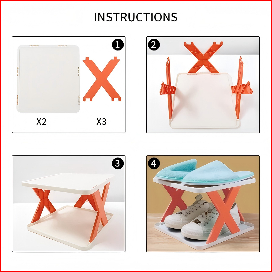Rak Sepatu Plastik Portabel Serbaguna Silang Dapat Dilipat Pemasangan Mudah
