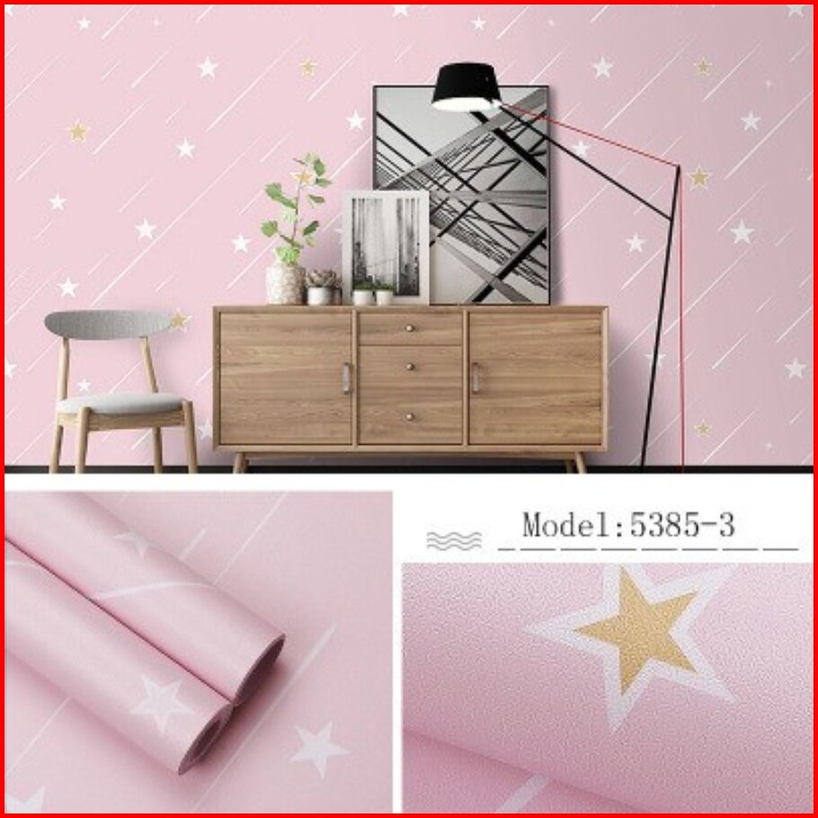 Wallpaper Dinding Ukuran 45 Cm X 10 M Motif Bintang Sky Pink