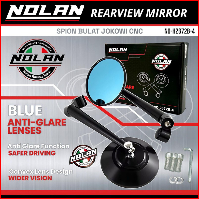 Nolan Spion Bulat Classic H2672b-4 Kaca Biru Bahan Full Aluminium Alloy Universal Motor