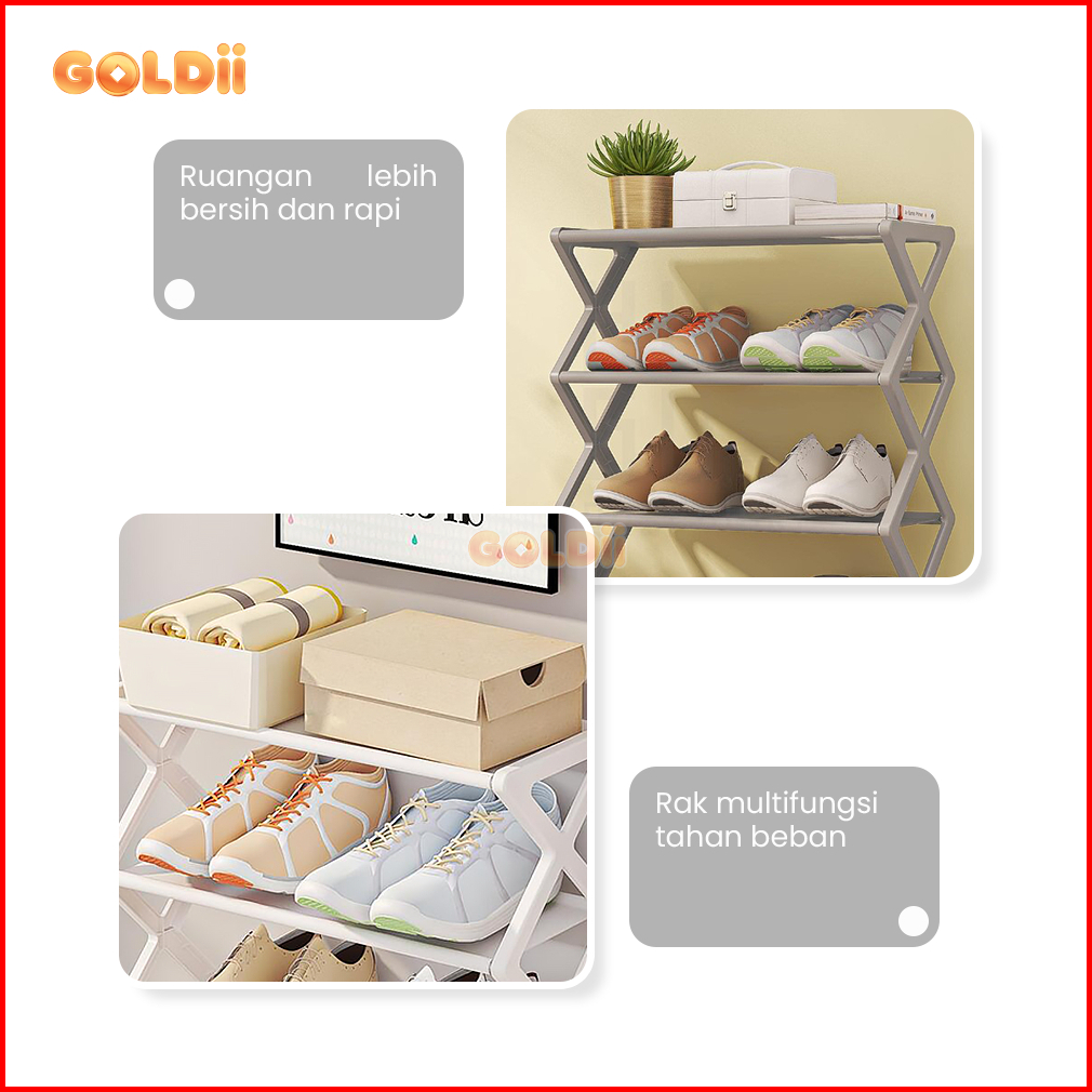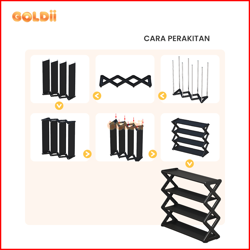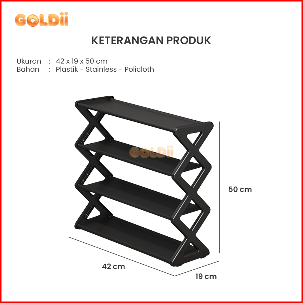 Goldii - Rak Sepatu X 4 Susun Portable Rak Sedndal Zig Zag 4 Tingkat Minimalis Serbaguna