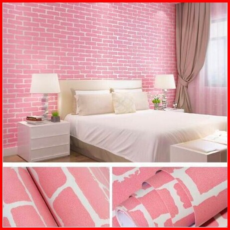 Wallpaper Dinding Ukuran 45 Cm X 10 M Motif Bata Pink